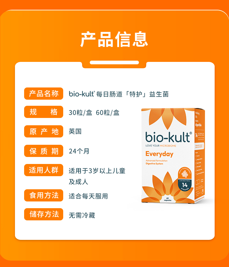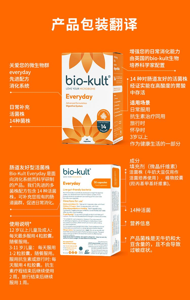 【进入英国医保】英国bio-kult百康百德进口每日肠道益生菌60粒