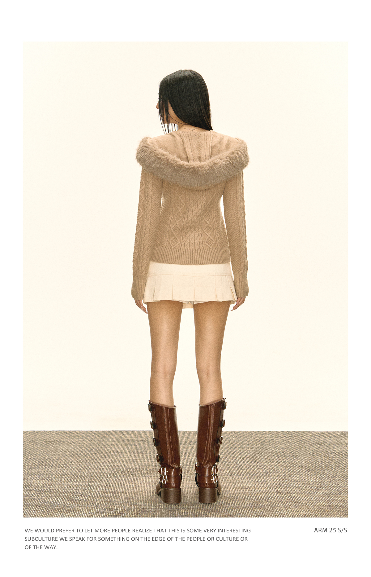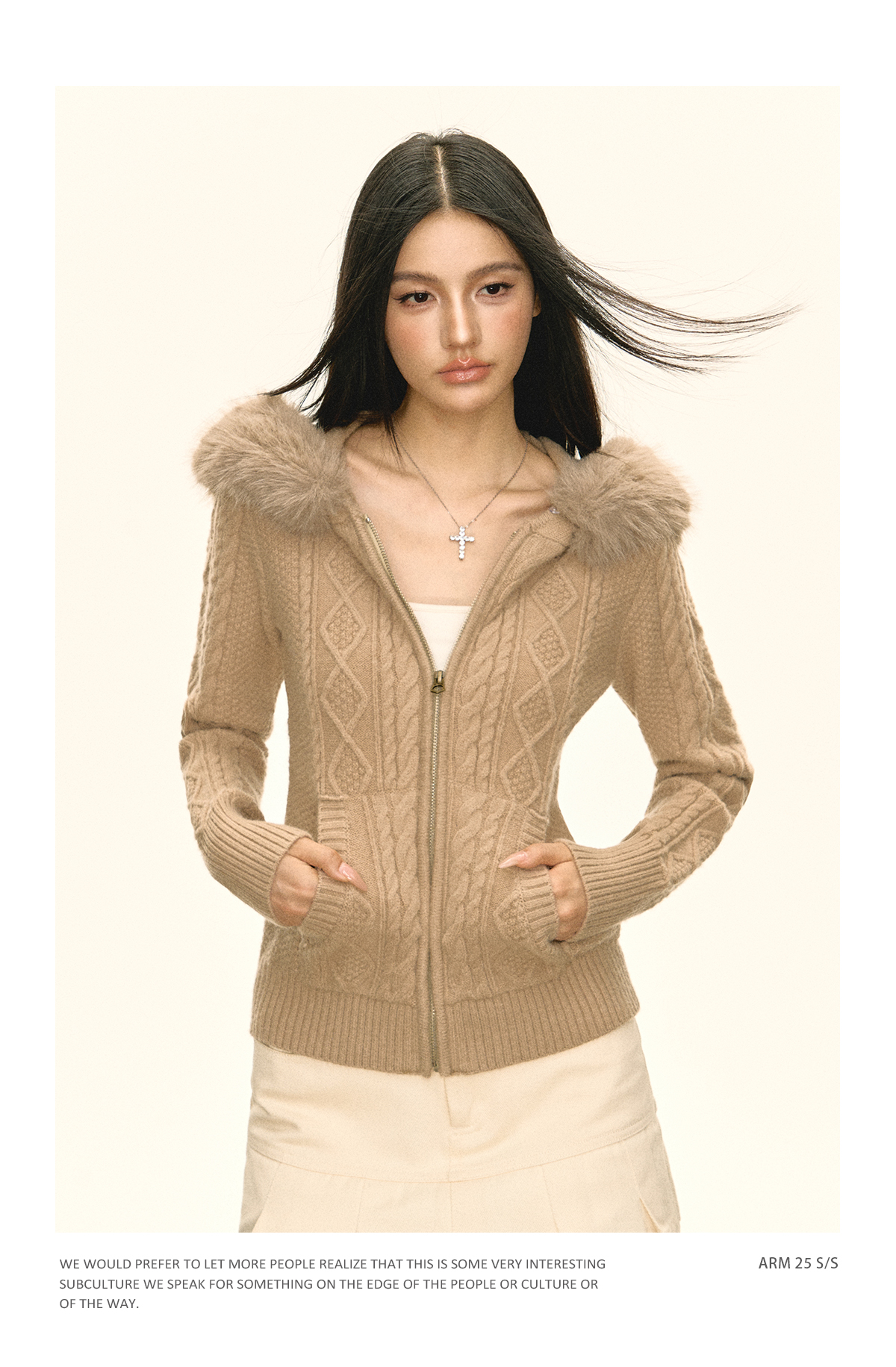 Ariseism 美式复古设计感连帽开衫毛衣外套女秋季新款修身上衣