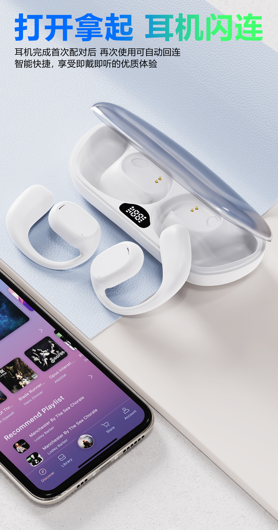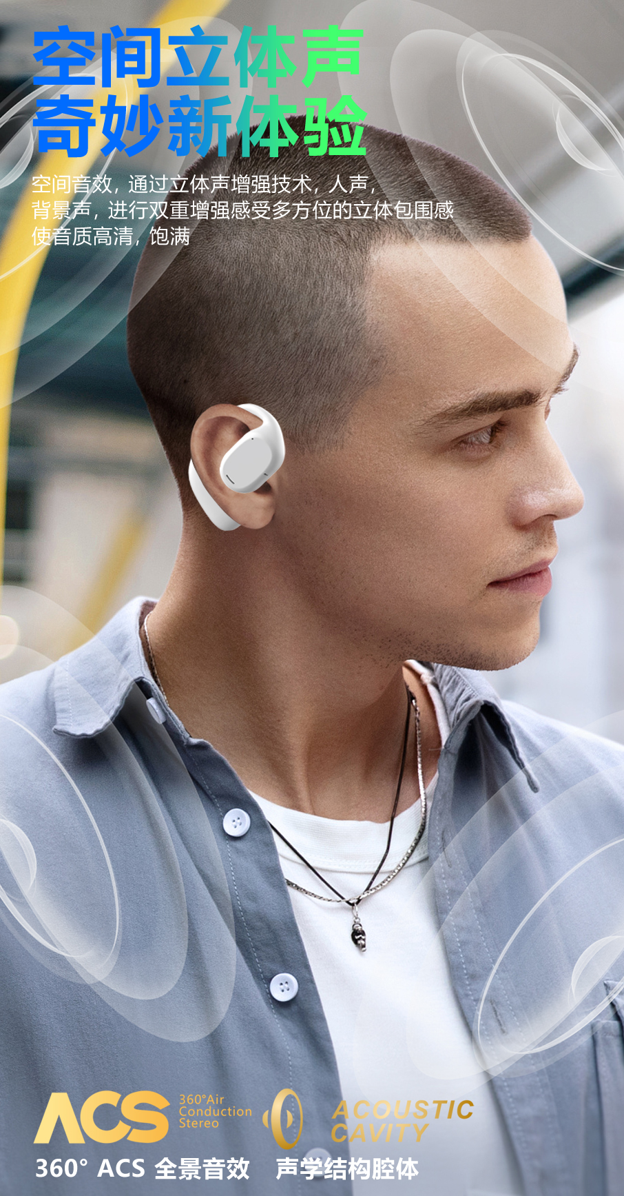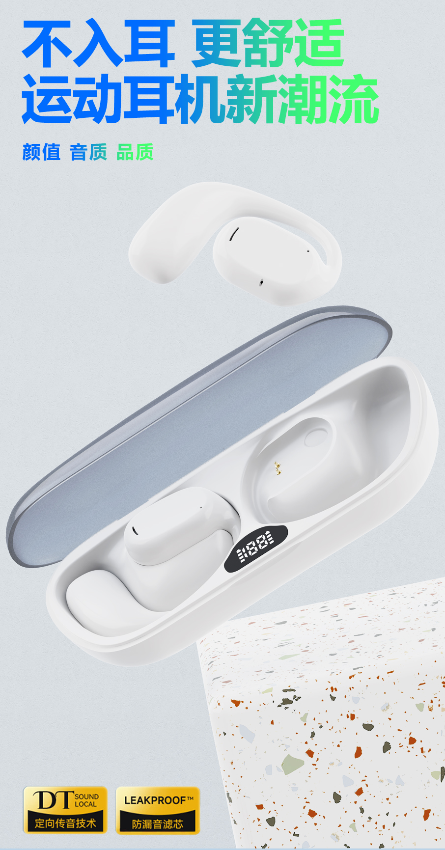 DORUY不入耳运动耳机 | 空气传导 定向传音 续航时间长 轻巧舒适 健身/跑步/瑜伽/开车/办公 苹果安卓通用