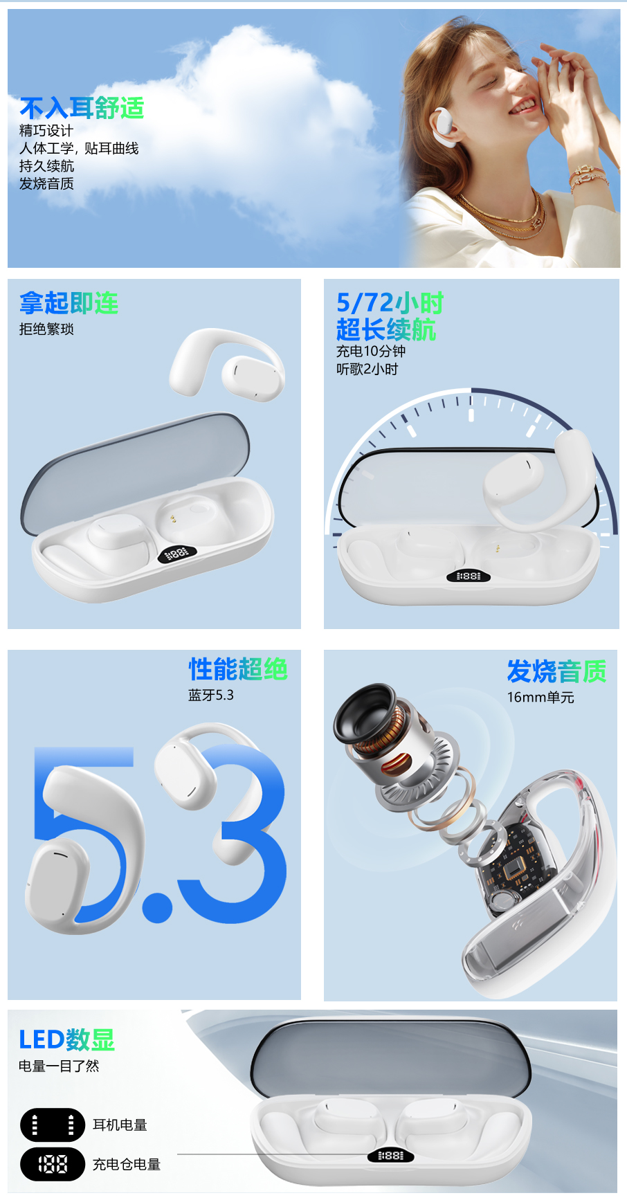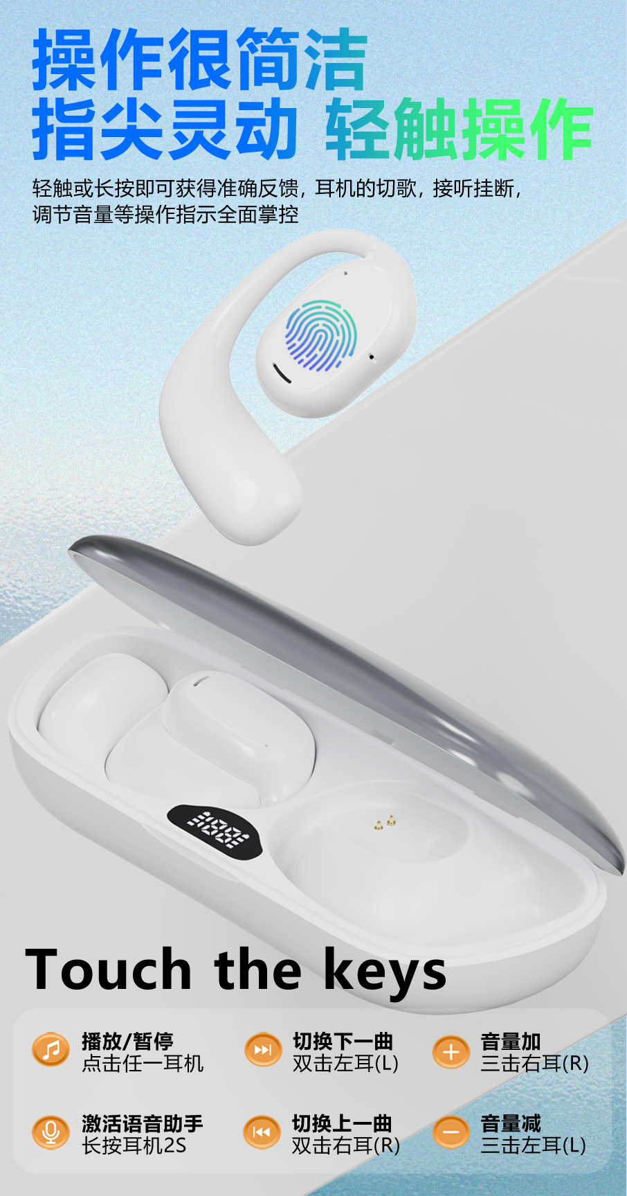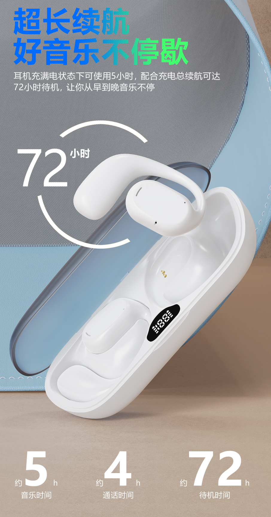 DORUY不入耳运动耳机 | 空气传导 定向传音 续航时间长 轻巧舒适 健身/跑步/瑜伽/开车/办公 苹果安卓通用