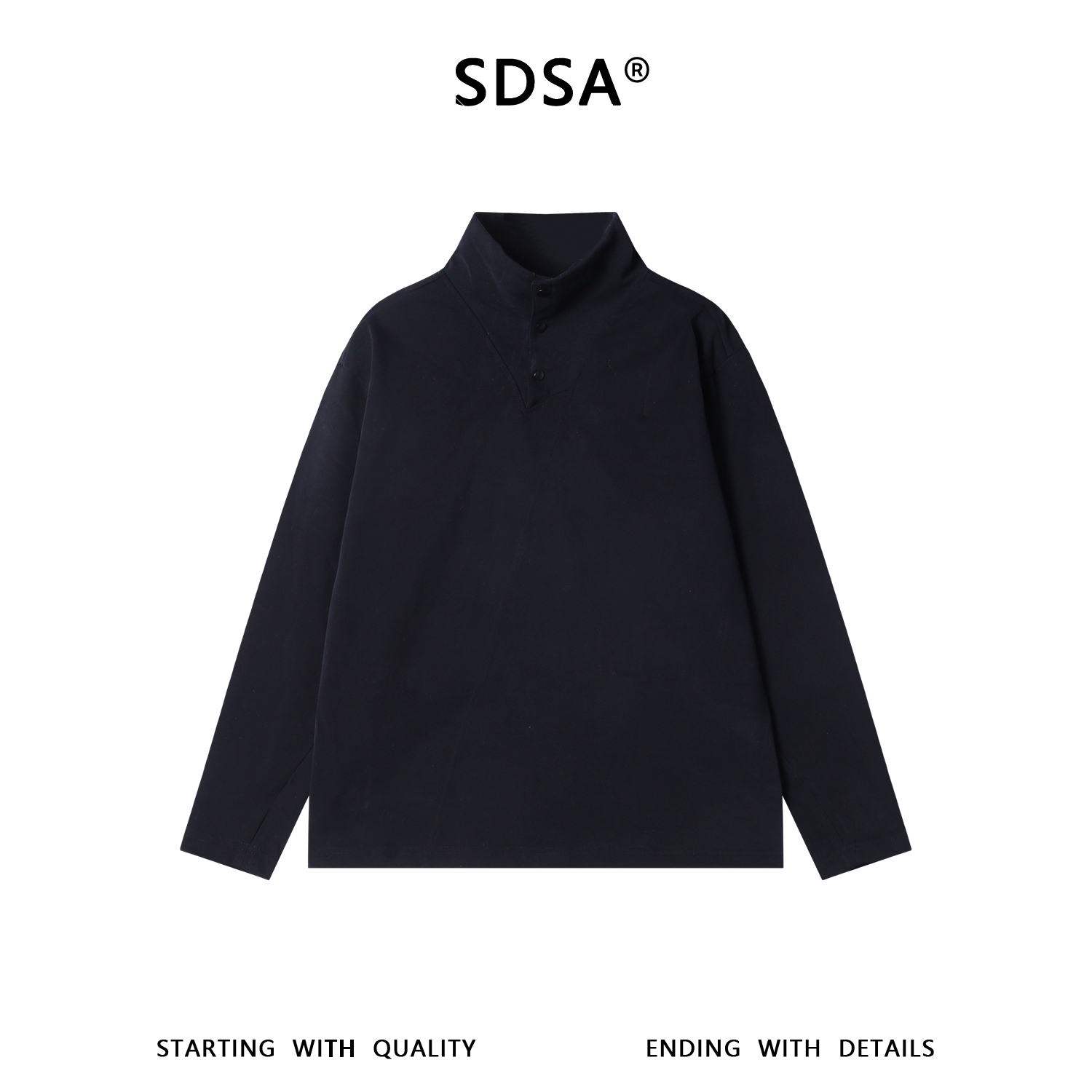 T5101SDSA男士秋冬新款痞帅男装简约纯色按扣立领长袖T恤百搭简约舒适