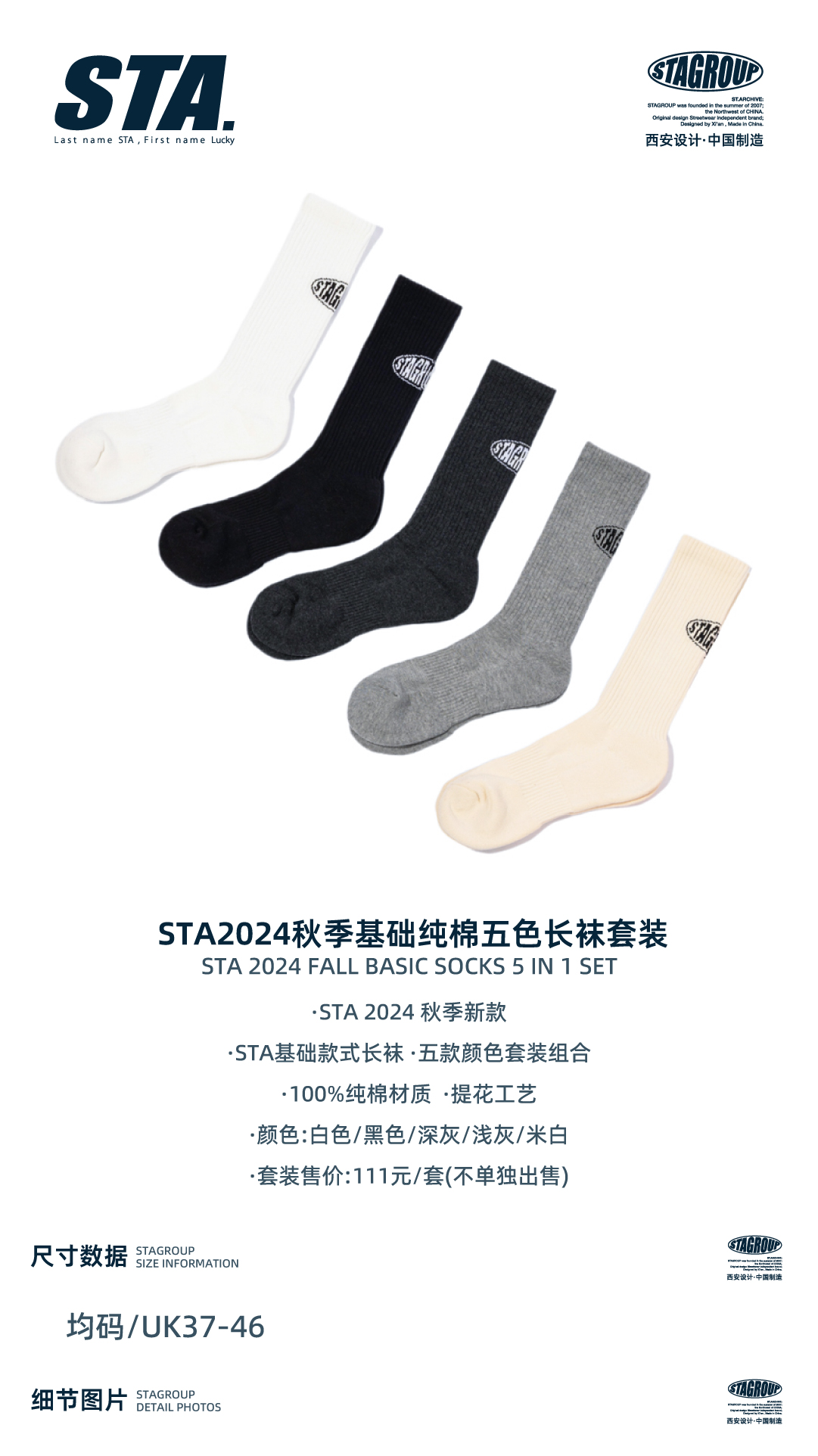 STA2024秋季基础纯棉五色长袜套装五双一套