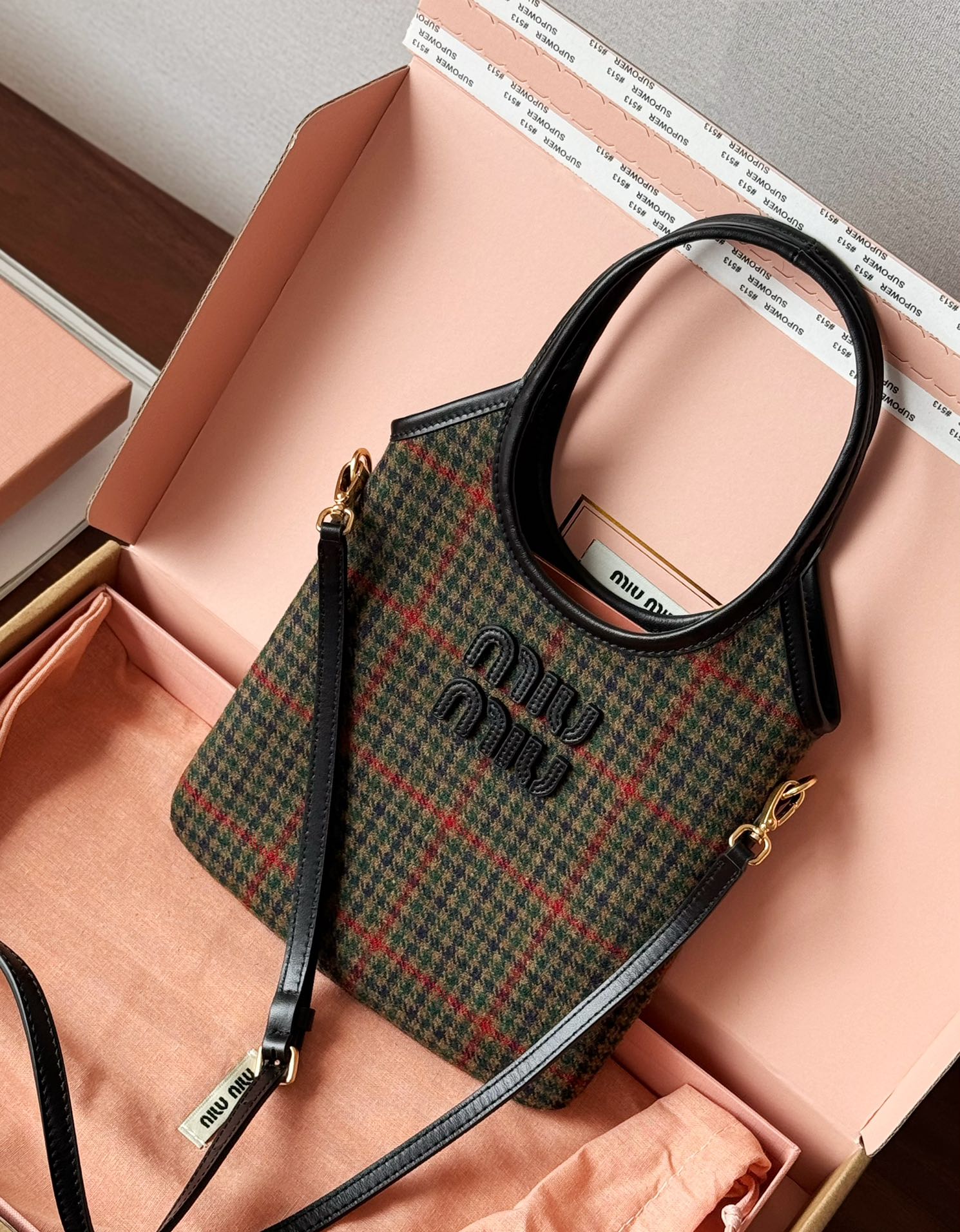 缪缪 迷你托特包!缩小版的ivy真的是太可爱了,除了可爱还是可爱! 感觉谁背都是一种享受,局部看俨然就像一个小吊带背心。这样的包款最讨小姐姐喜欢了