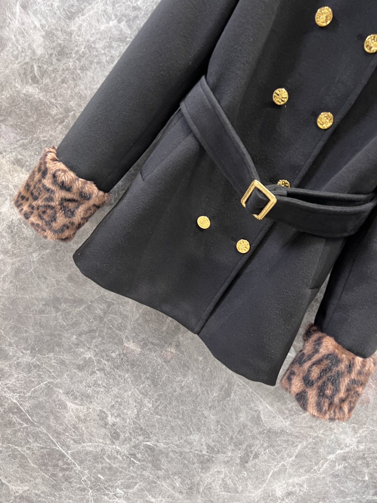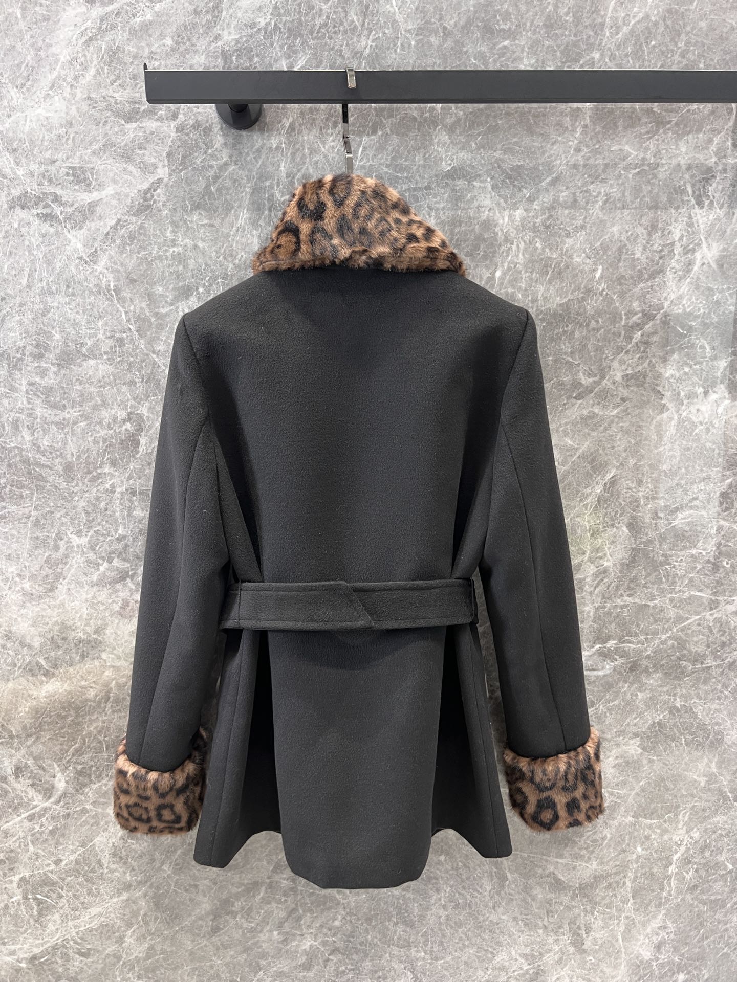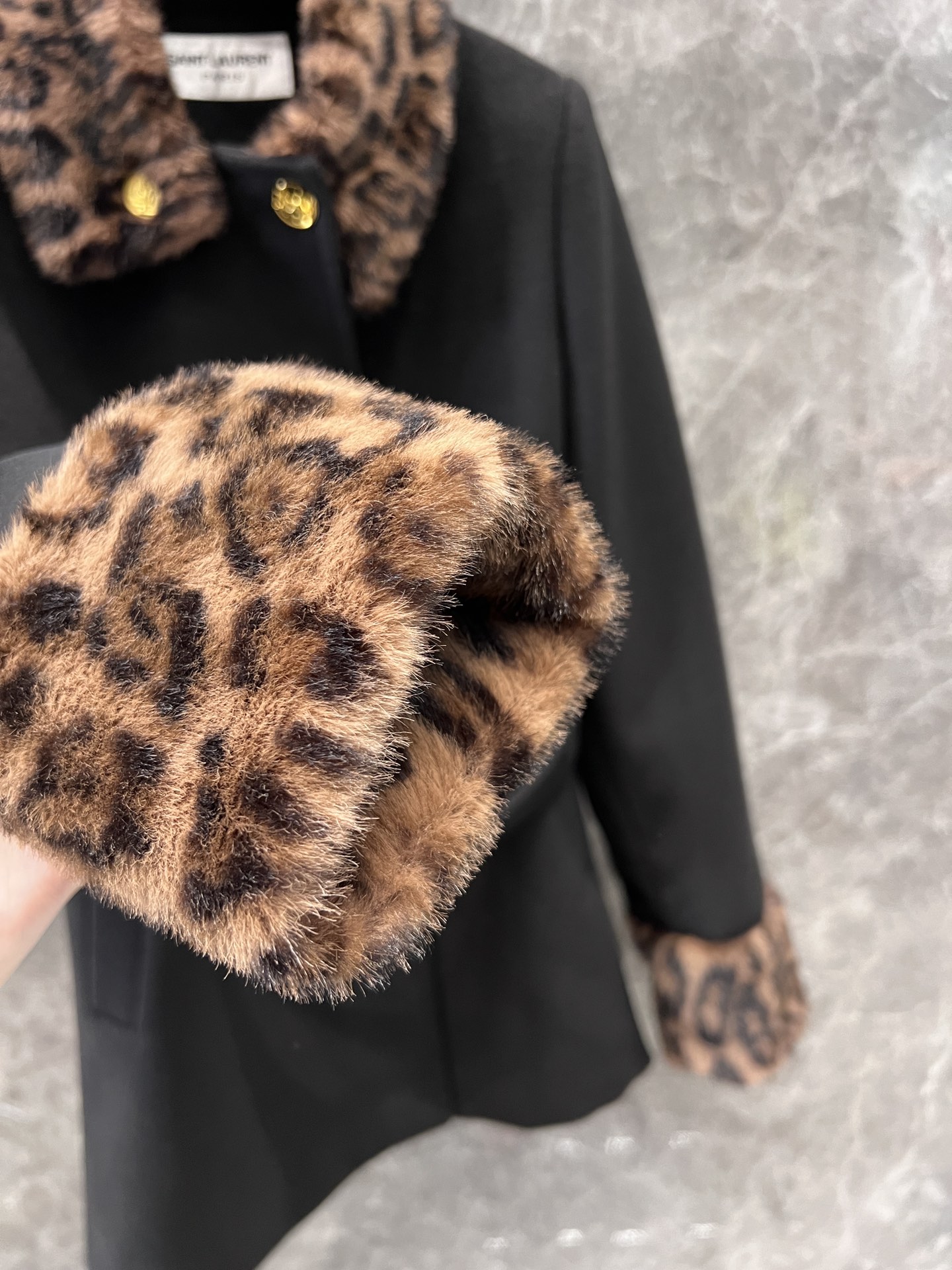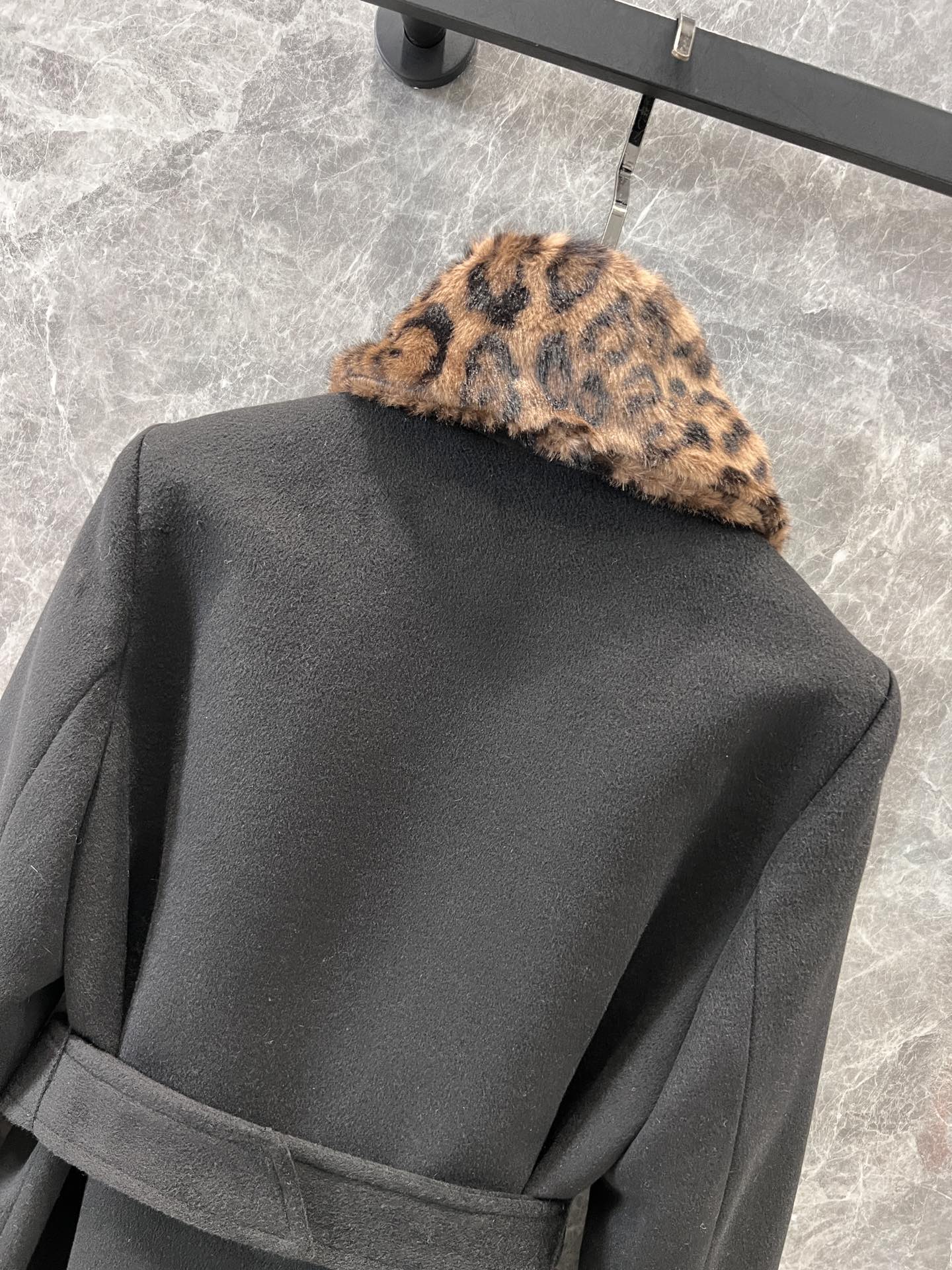 Saint Laurent 24Fw秋冬新款 豹纹拼接围脖设计感双排扣呢大衣腰带外套