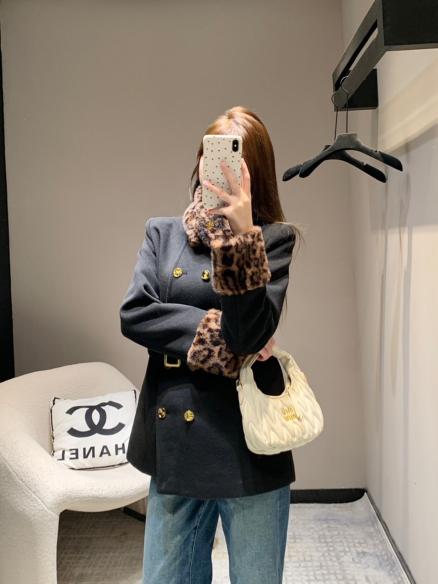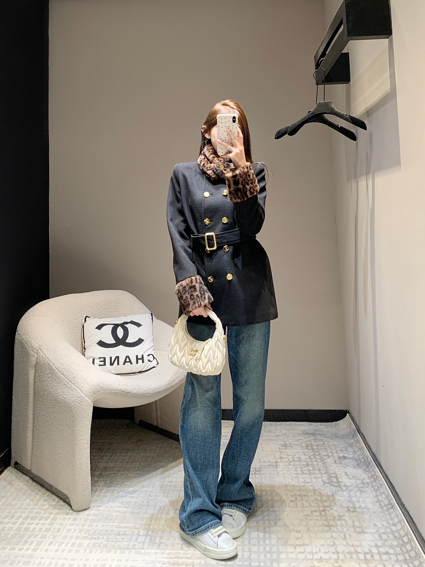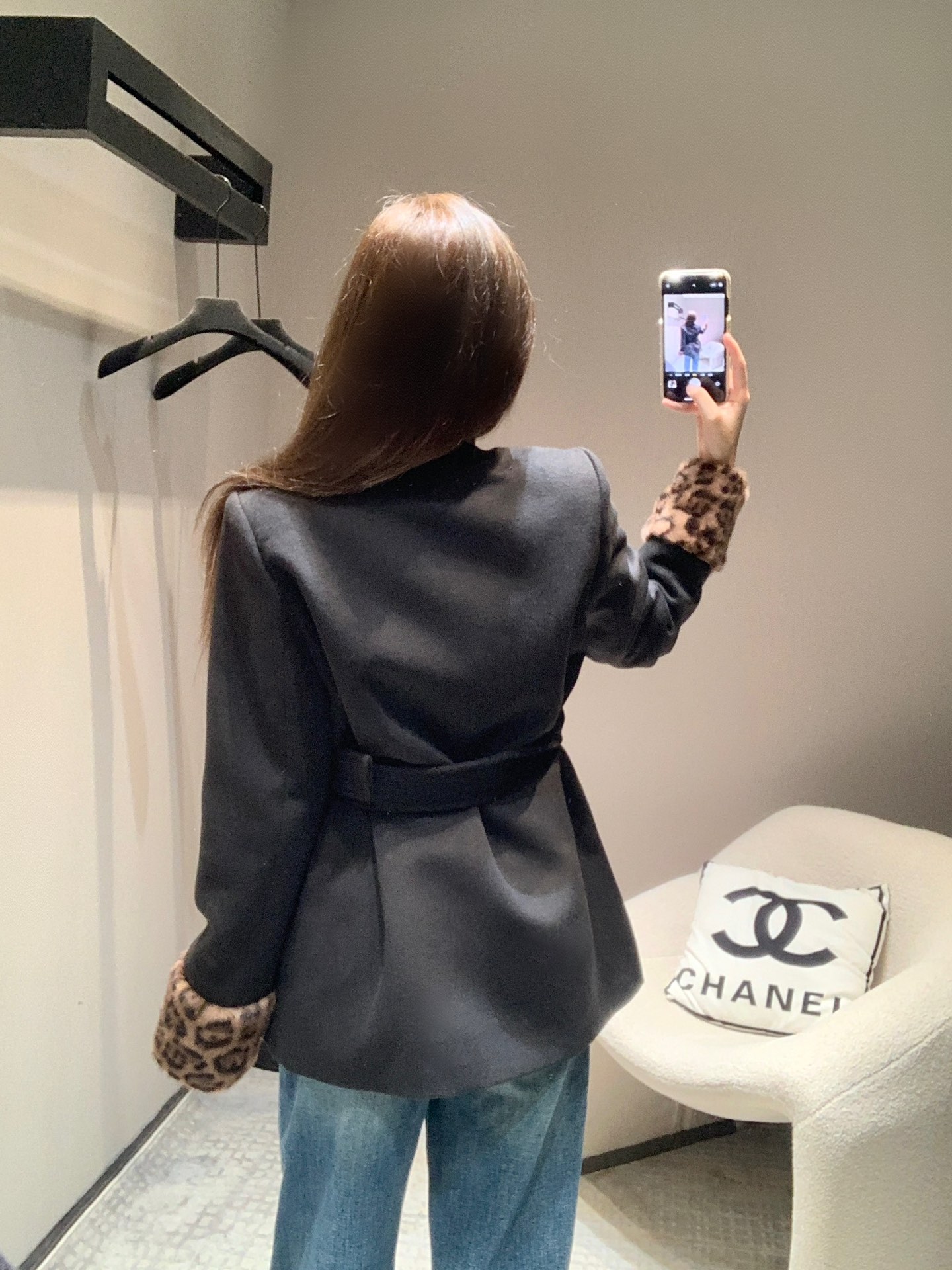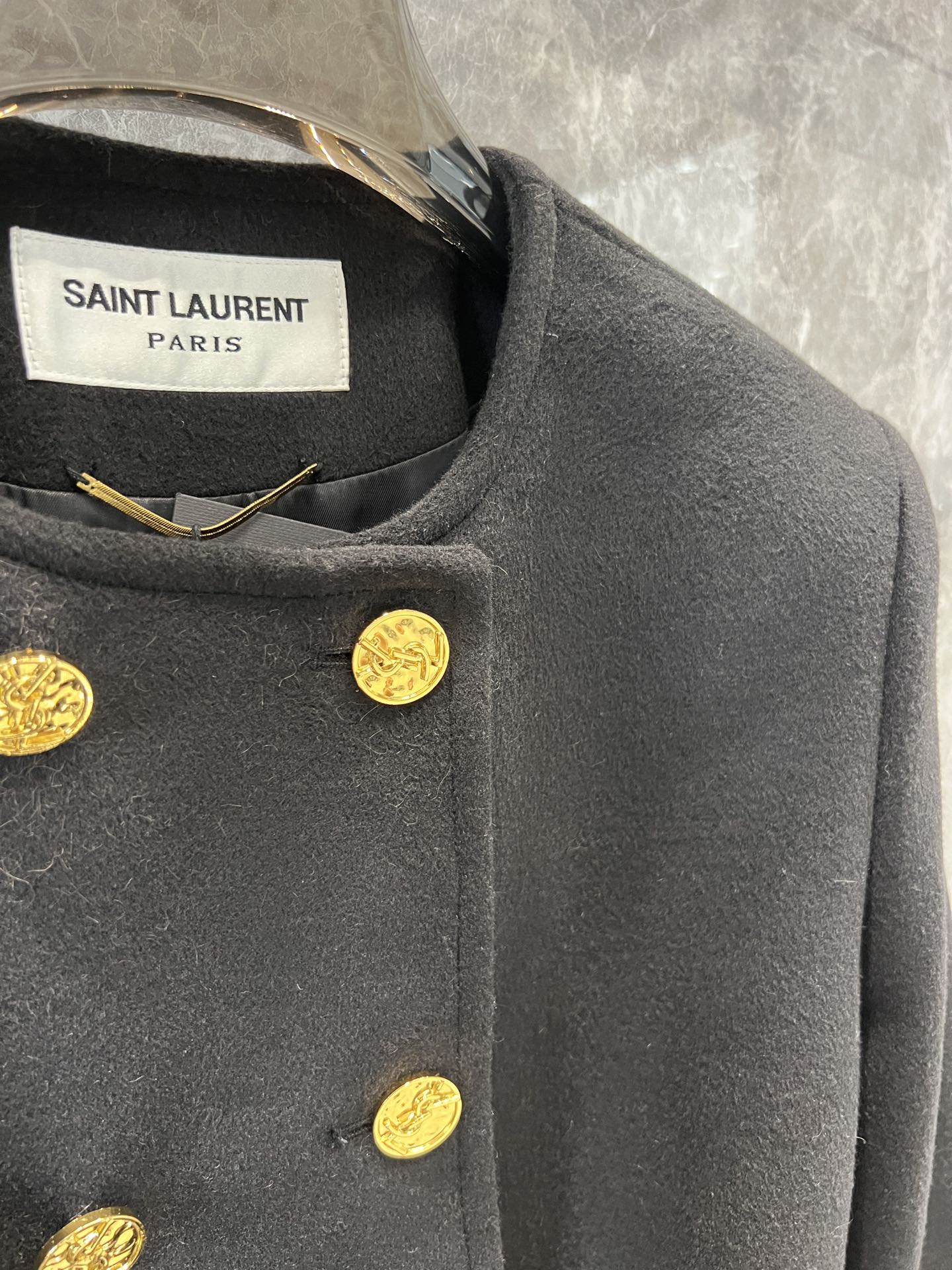 Saint Laurent 24Fw秋冬新款 豹纹拼接围脖设计感双排扣呢大衣腰带外套