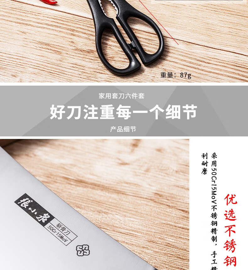 张小泉 不锈钢刀具菜刀套装启航系列刀具六件套装D30550100 启航