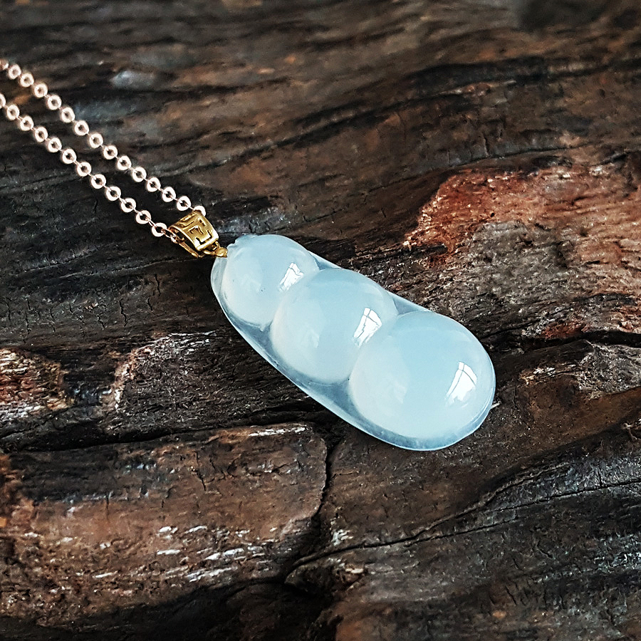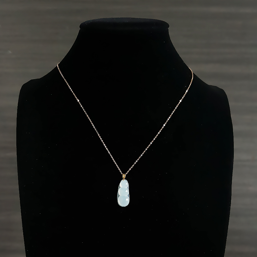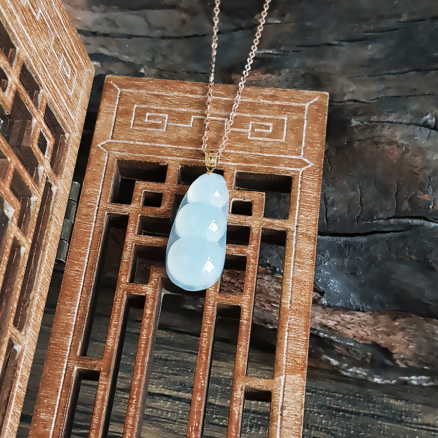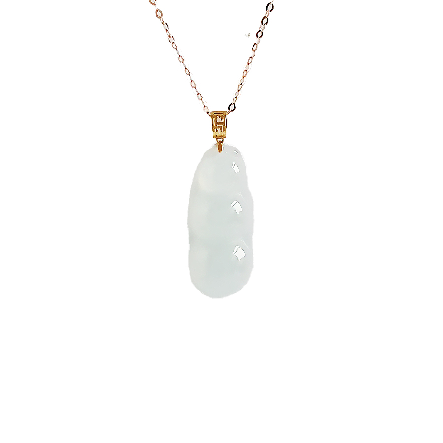 名称 | AU750黄金镶天然冰种福豆造型翡翠(福、禄、寿)吊坠项链 |