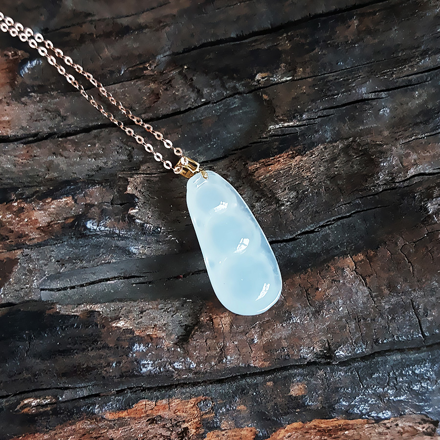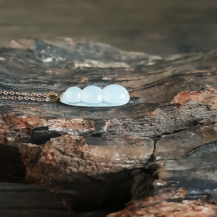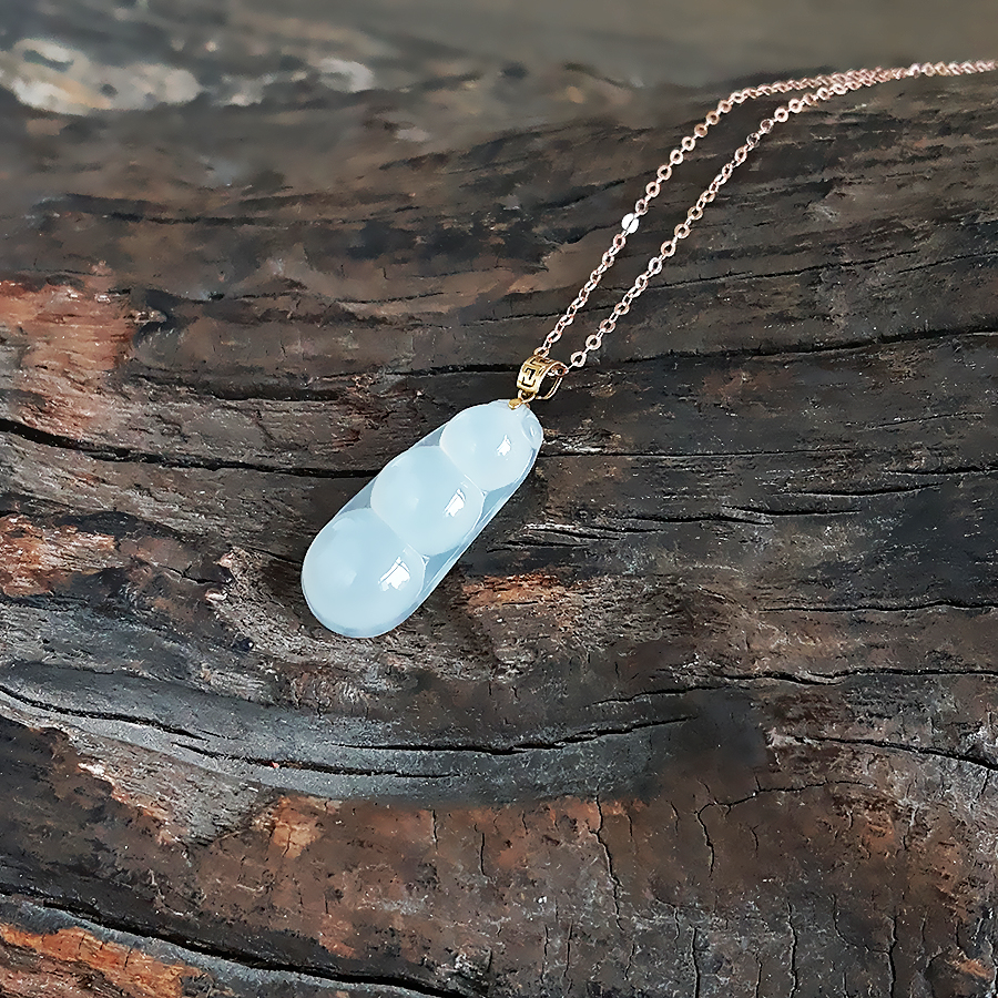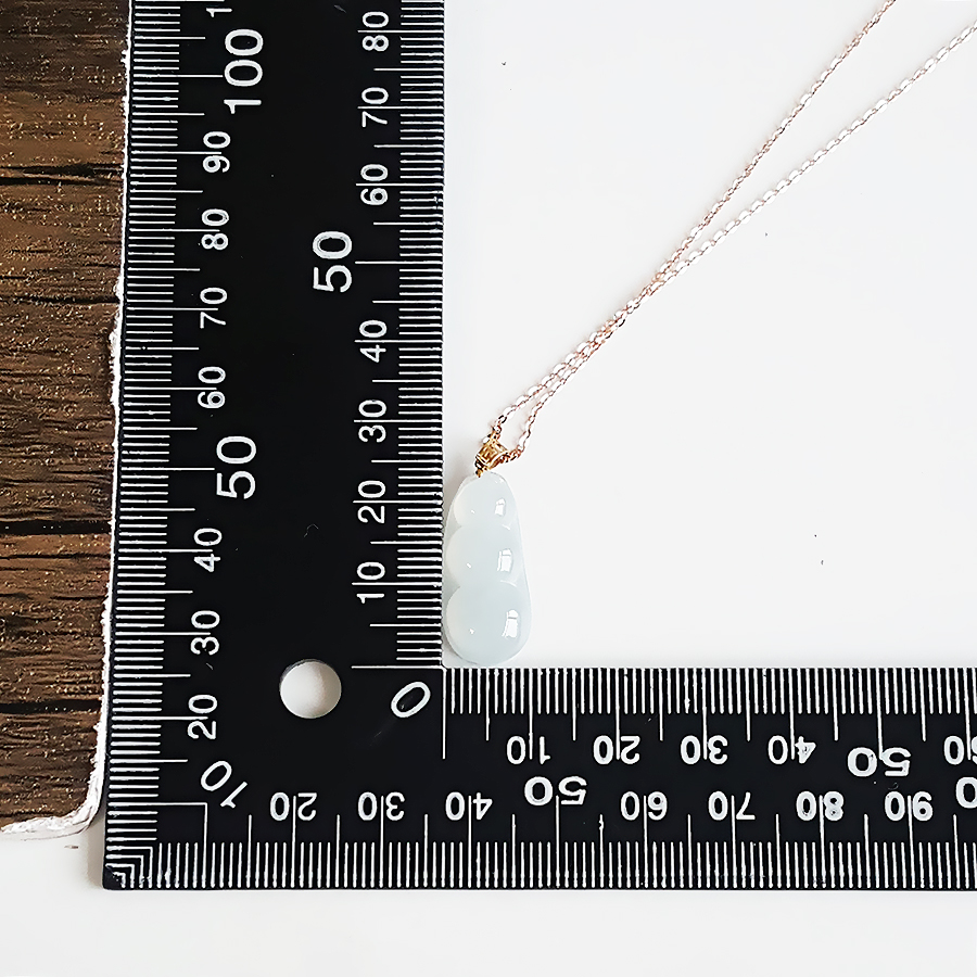 名称 | AU750黄金镶天然冰种福豆造型翡翠(福、禄、寿)吊坠项链 |