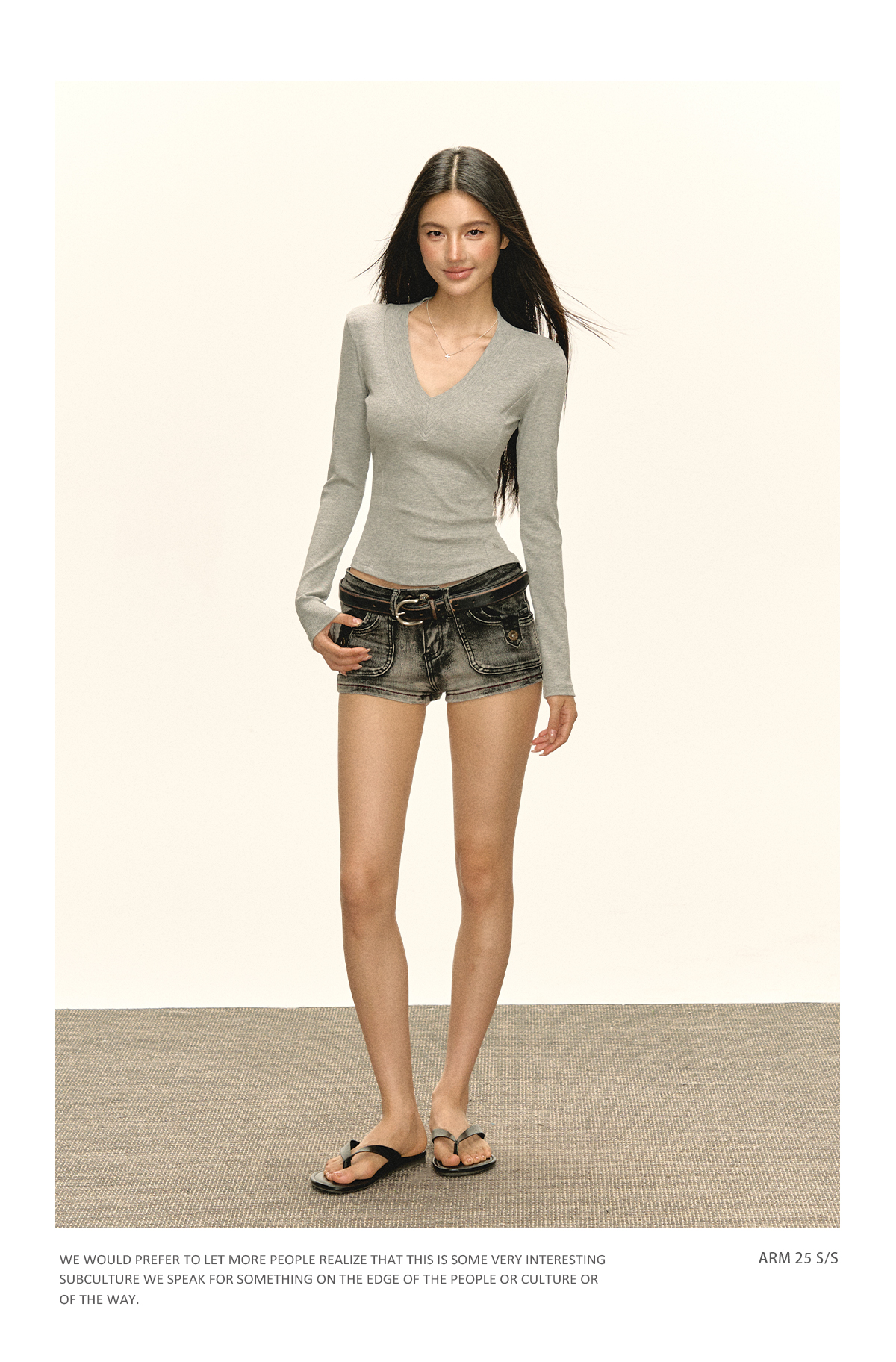 Ariseism 美式复古薄款长袖T恤女2025秋季新款修身上衣