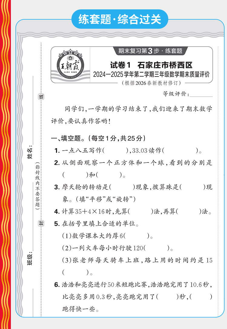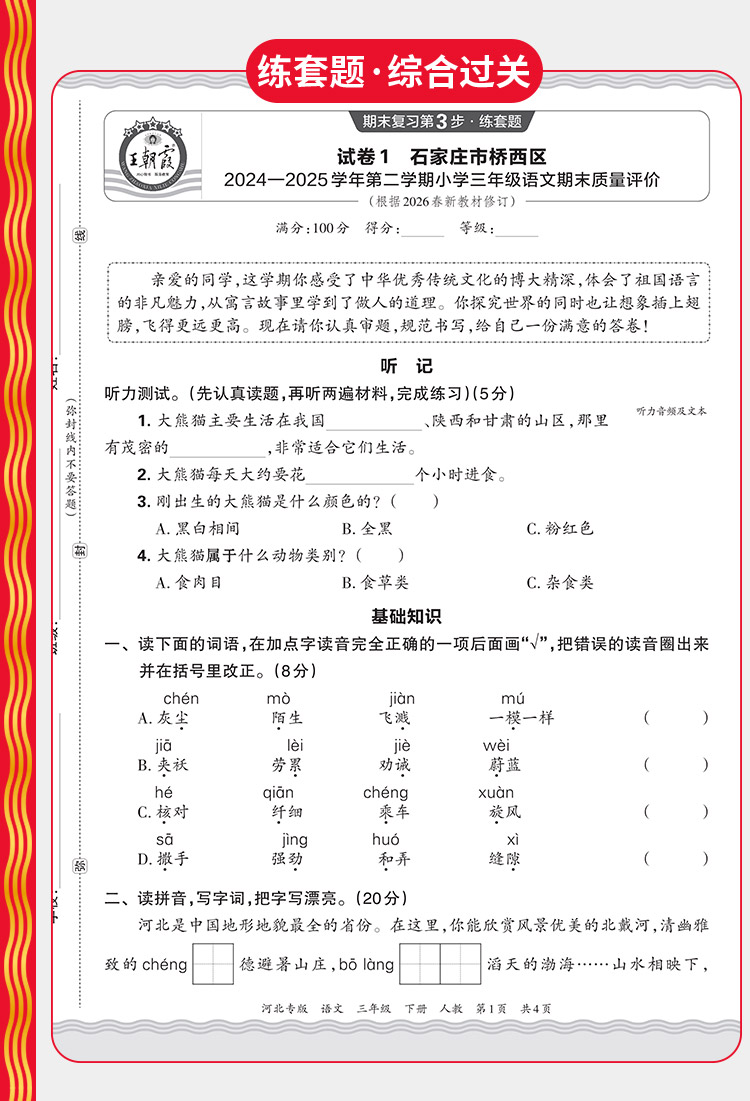 【河北专版】2026春下册王朝霞各地期末试卷精选1-6年级小学真题精编语数英期末冲刺复习