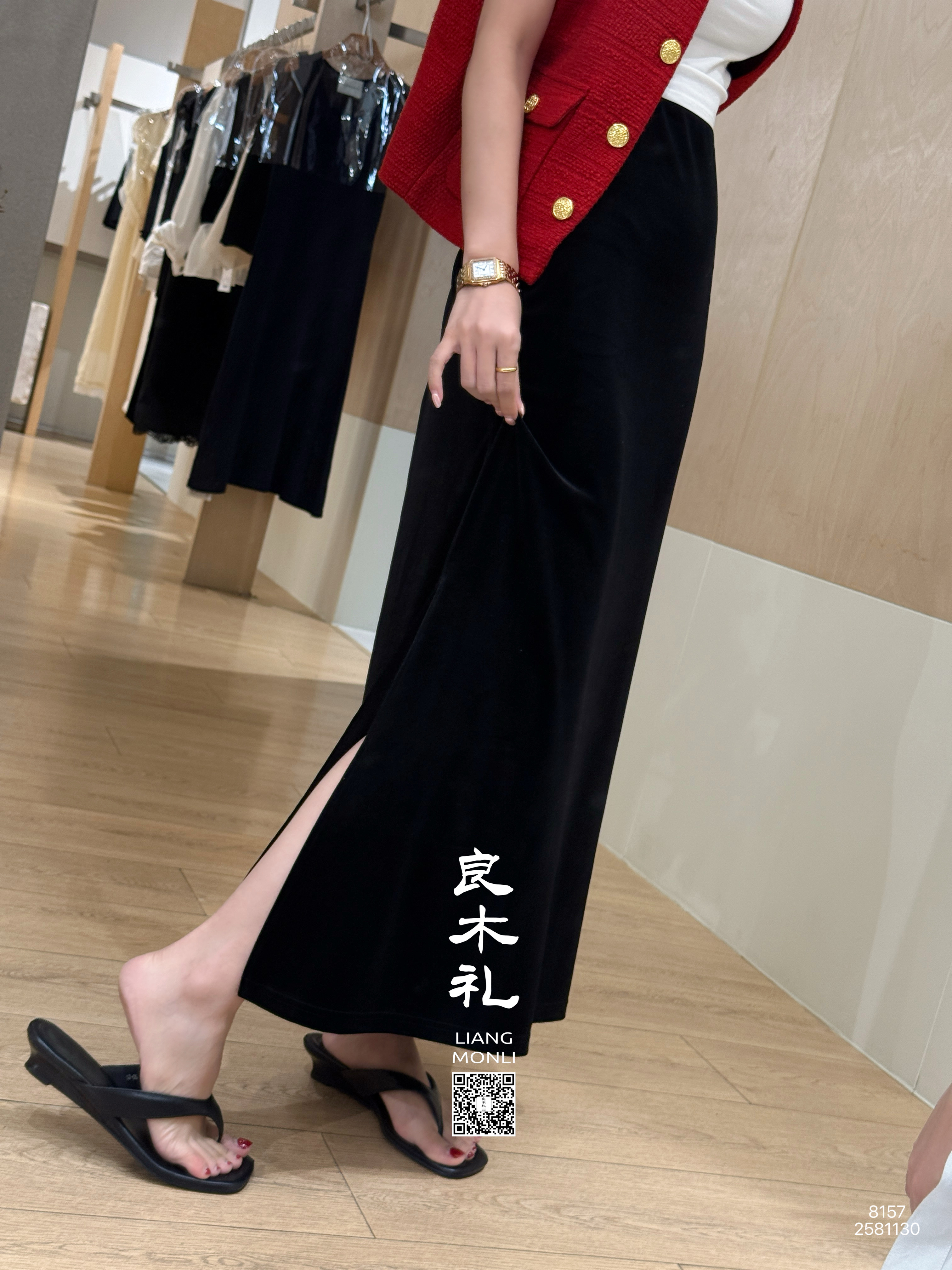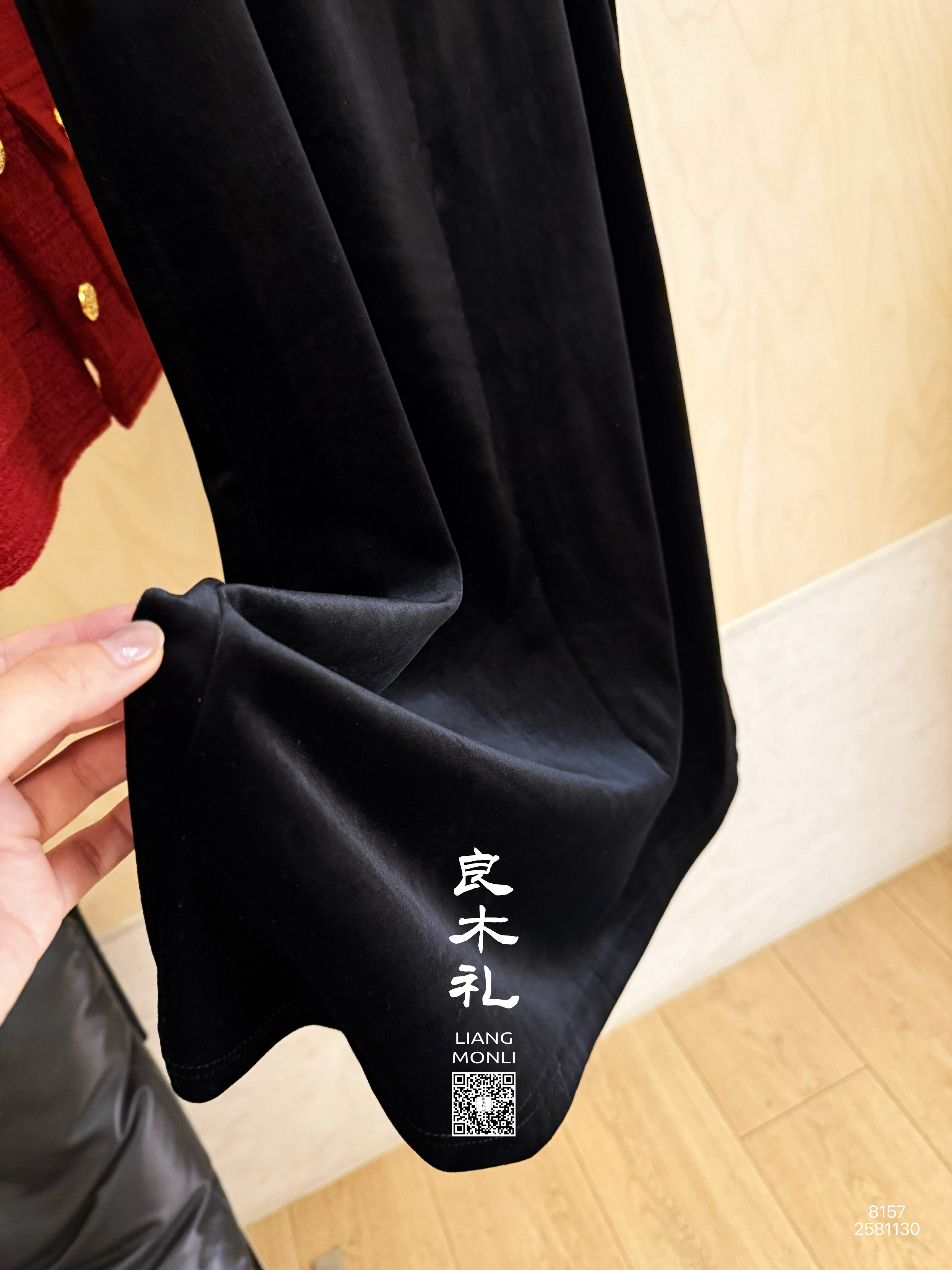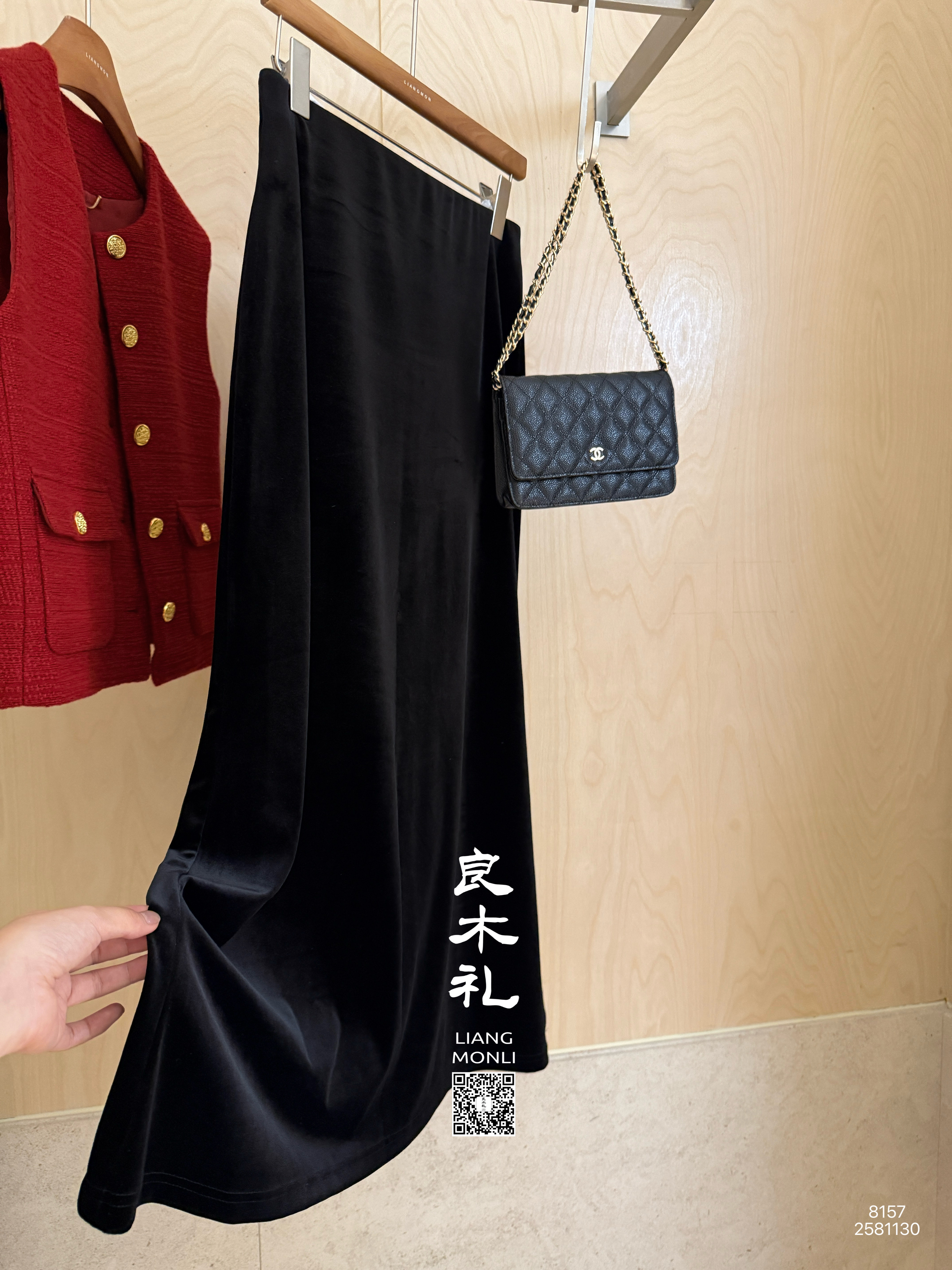 【预售7天】良木礼丝绒开叉半裙(黑绒绒)(Q2581130)