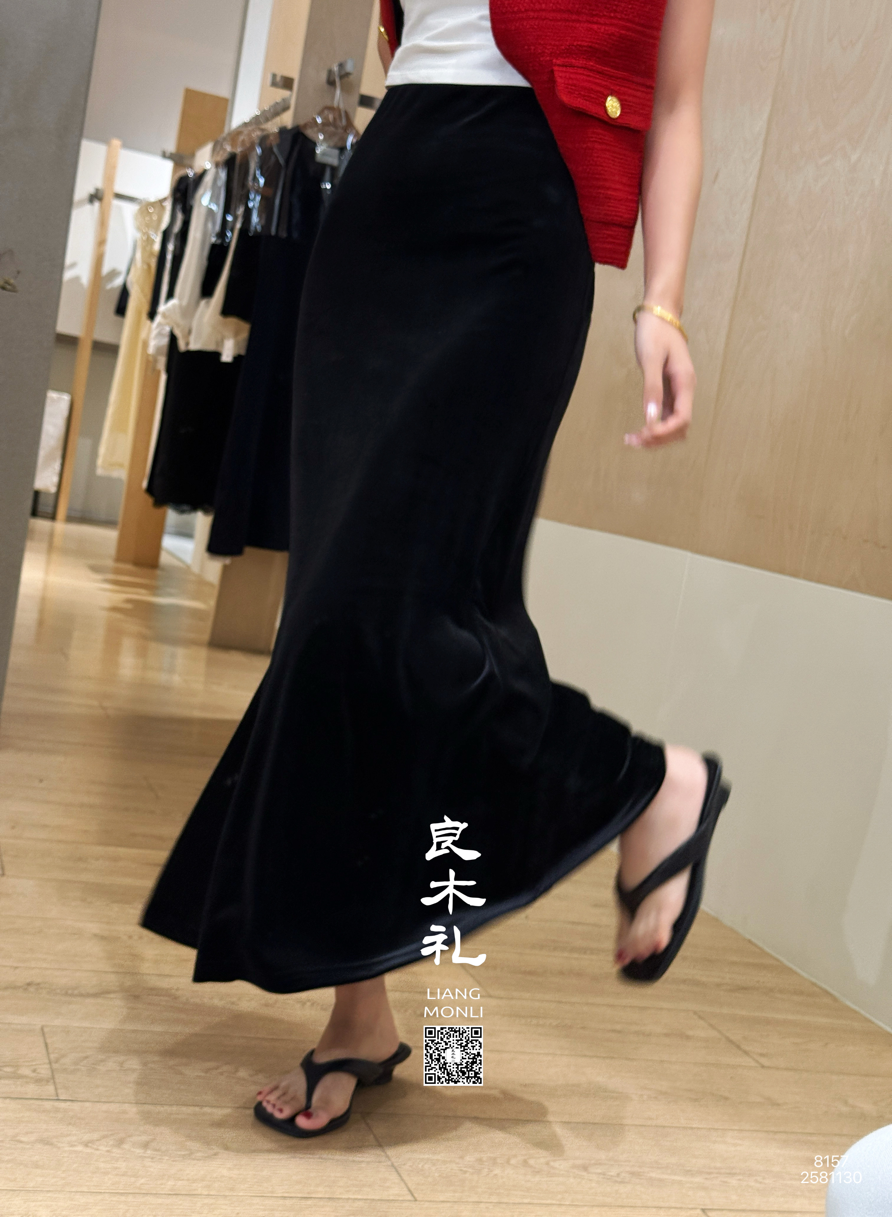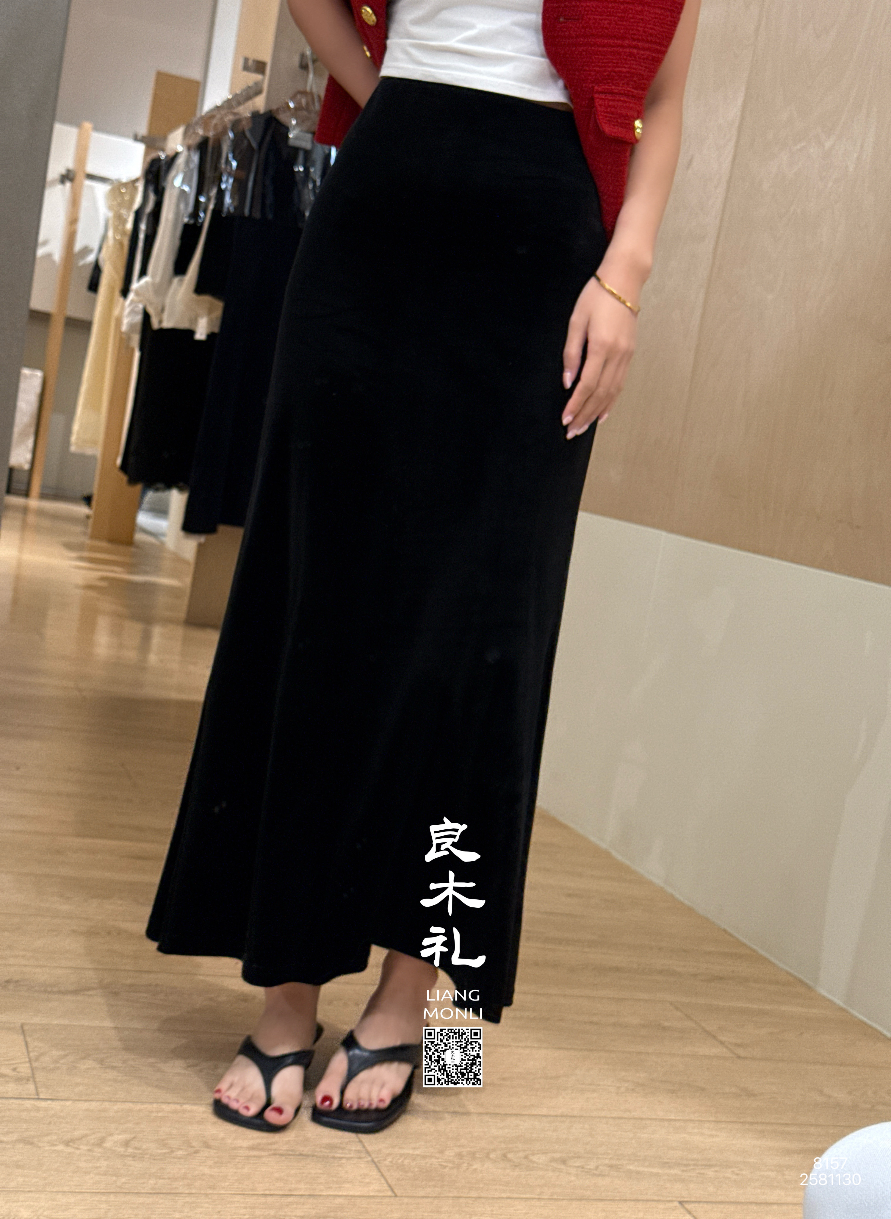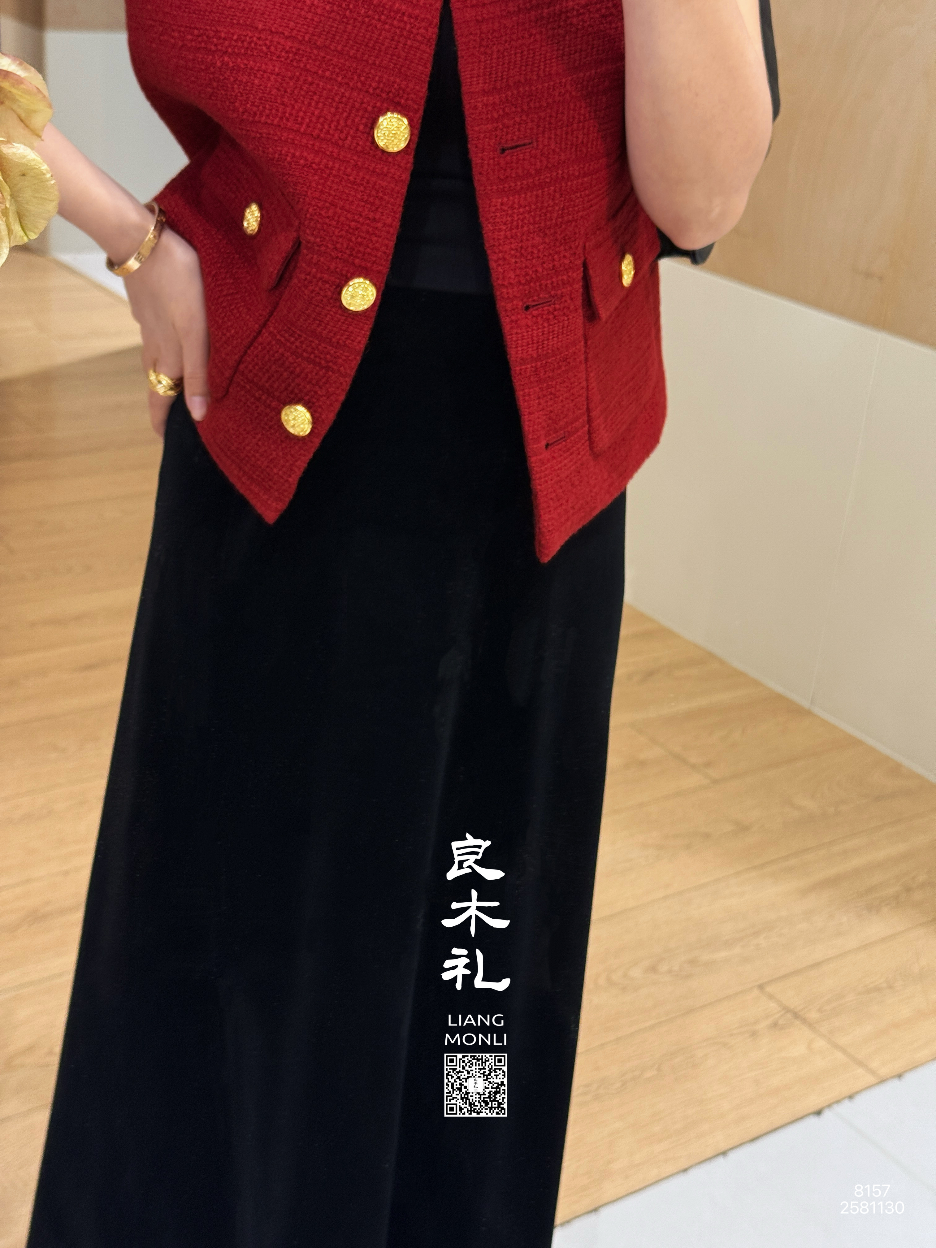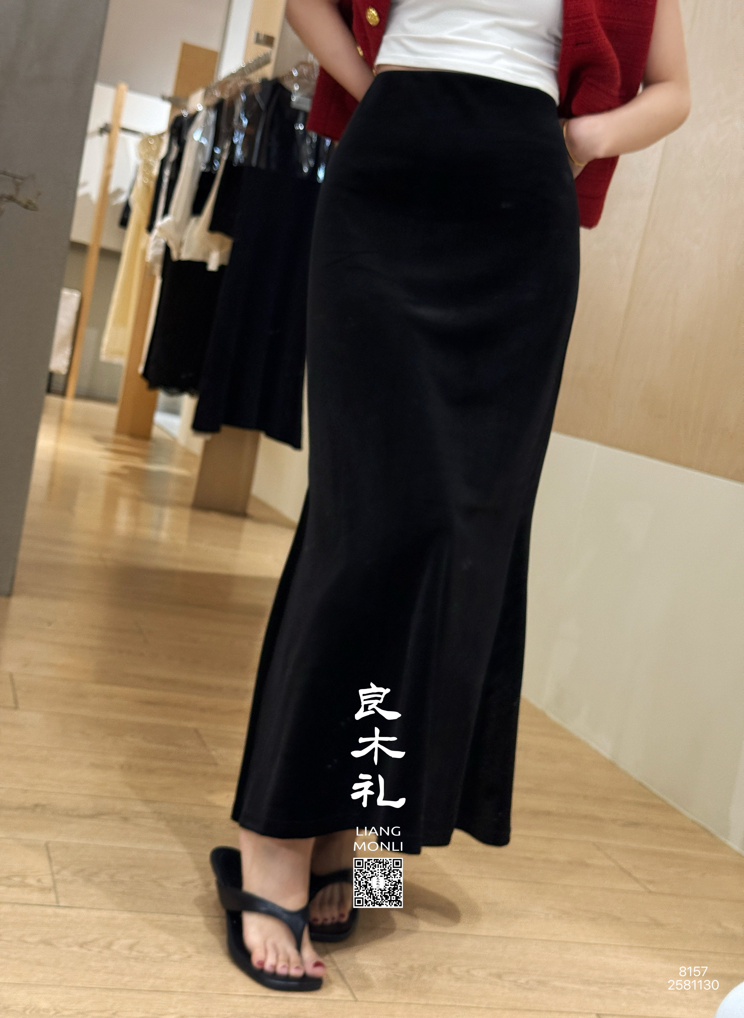 【预售7天】良木礼丝绒开叉半裙(黑绒绒)(Q2581130)