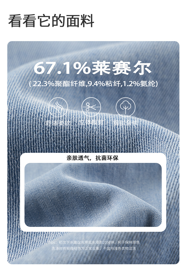 【长裤】女装天丝棉超凉爽亲肤透气垂感宽松直筒牛仔裤 1N2224602