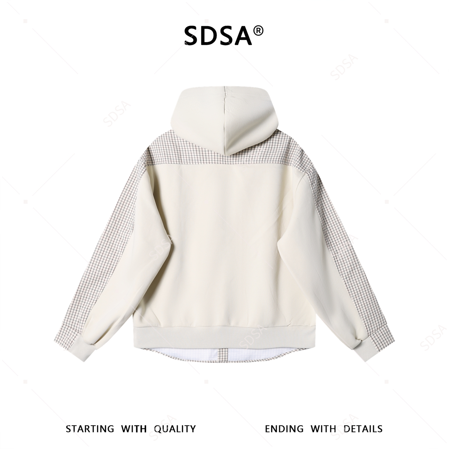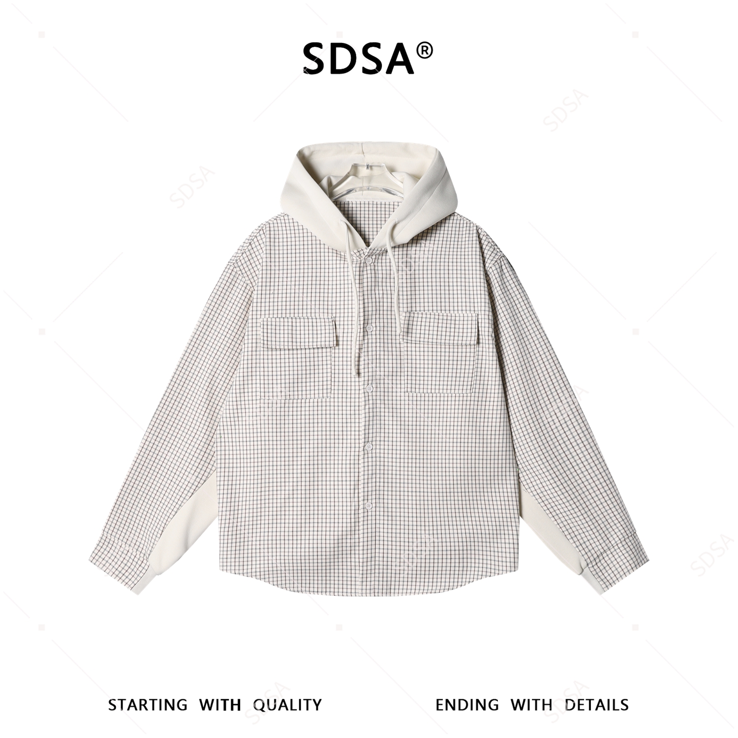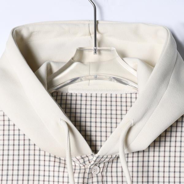 31037SDSA男士秋冬新款痞帅男装潮牌撞色格子拼接设计连帽衬衫百搭时尚