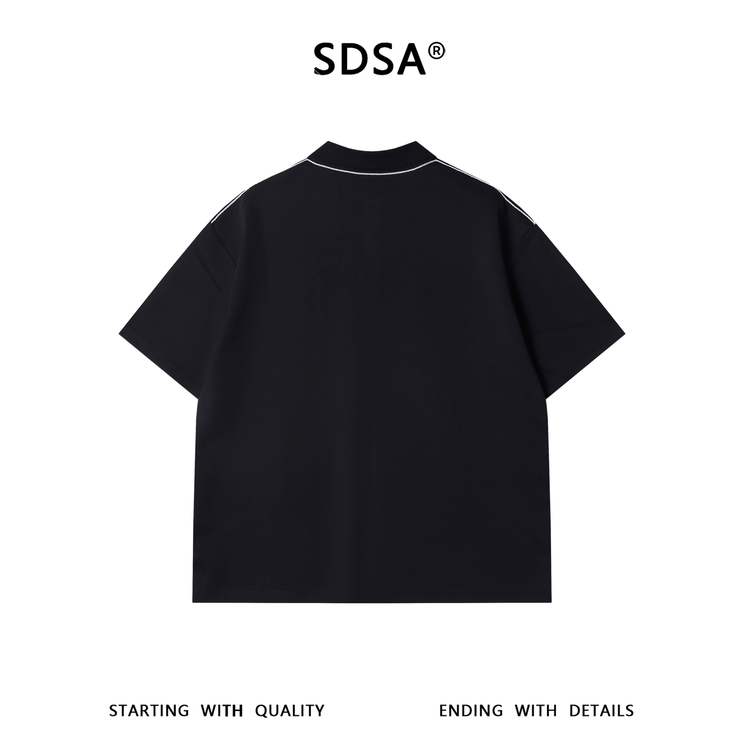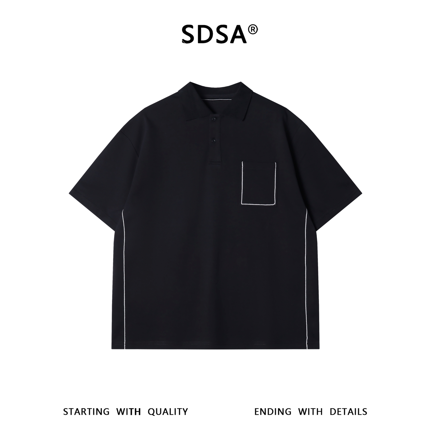 SDSA男装2026新款高贵轻奢商务简约明线口袋纽扣翻领短袖T恤百搭