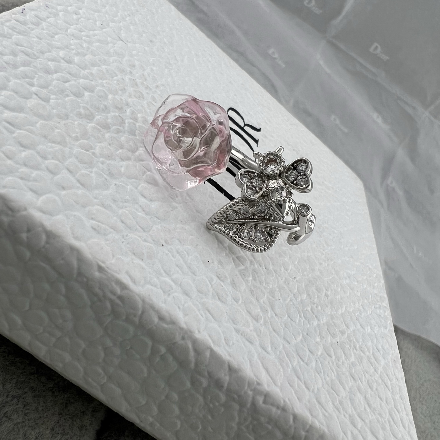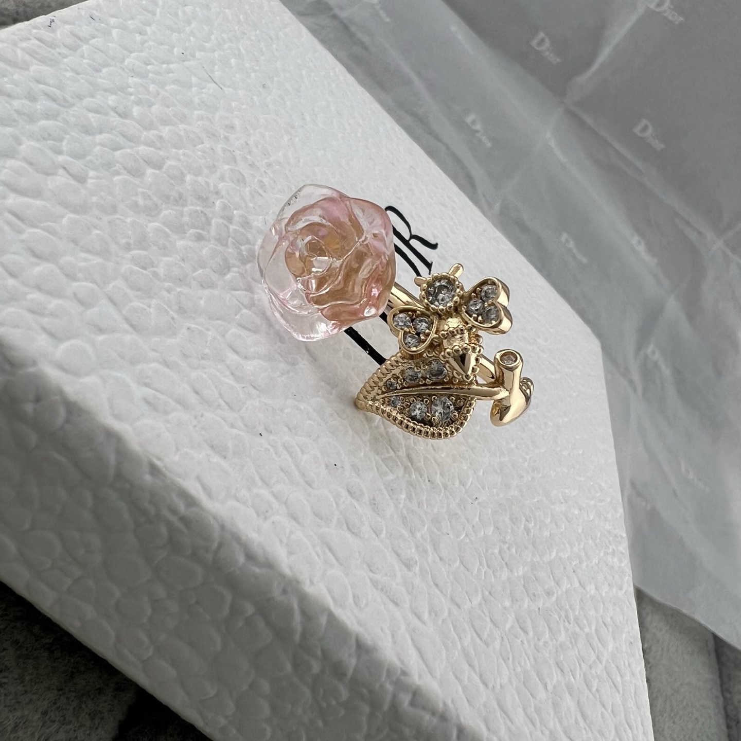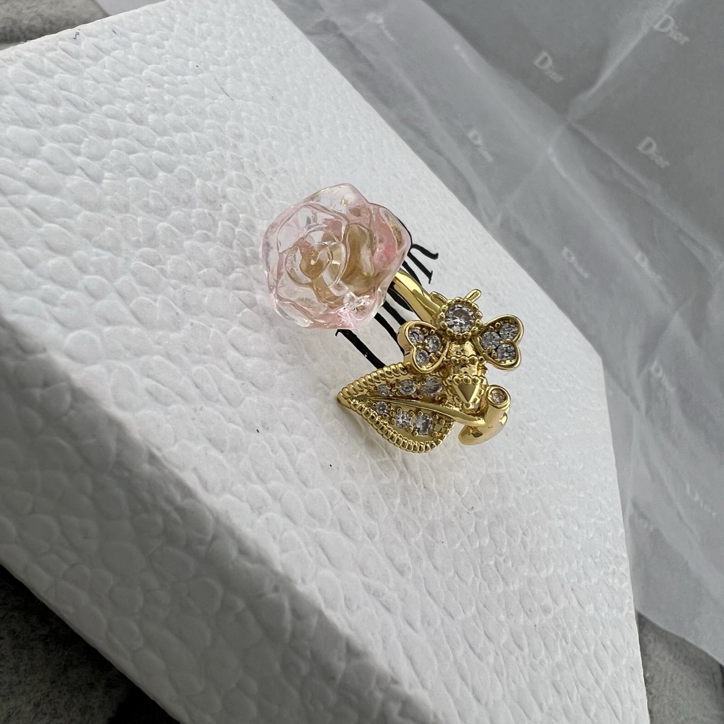 Dior迪奥 新款 镶钻蜜蜂树枝芙蓉花开口戒指