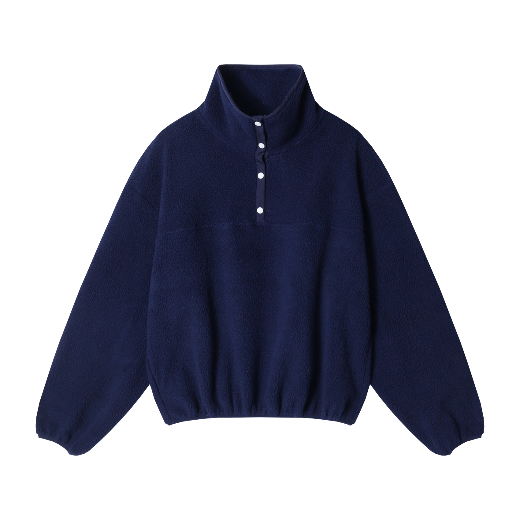 秋冬季新款立领时尚个性排扣立领宽松软糯卫衣休闲百搭潮流上衣