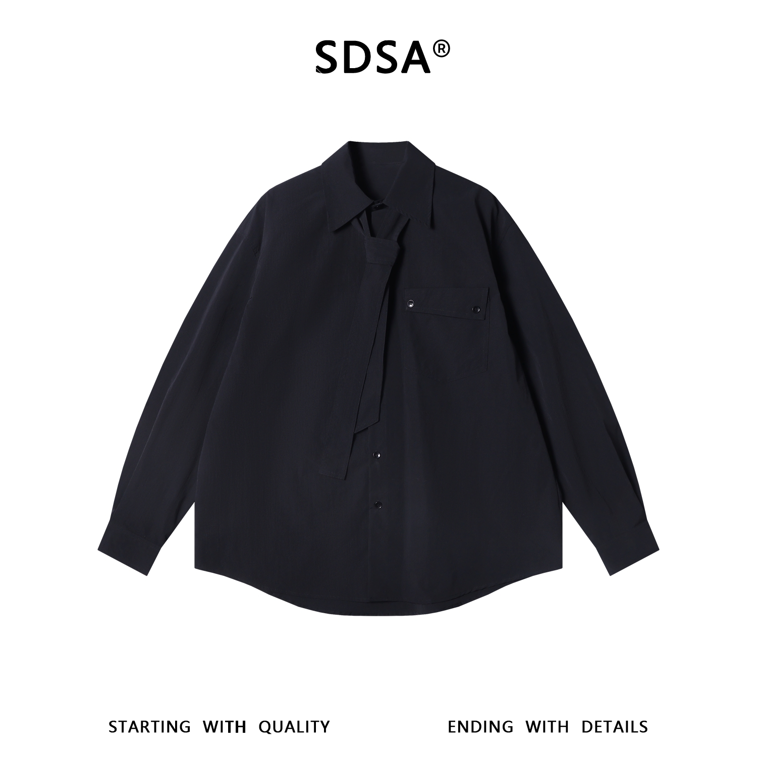 SDSA男装2026新款高贵轻奢韩系简约纯色竖纹领带长袖衬衫百搭宽松