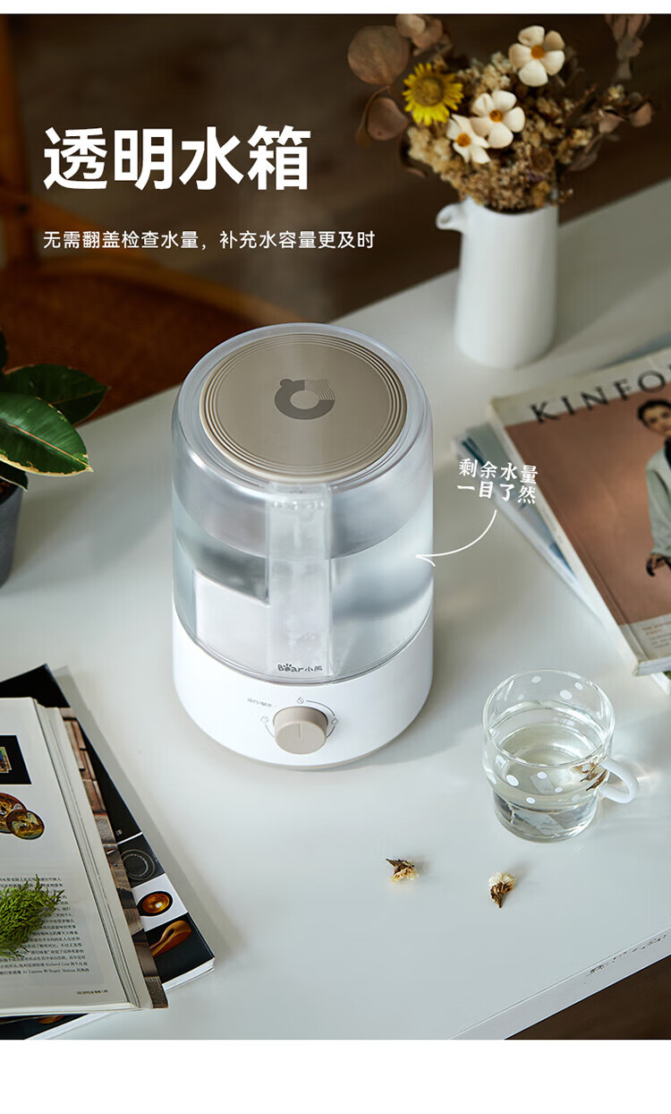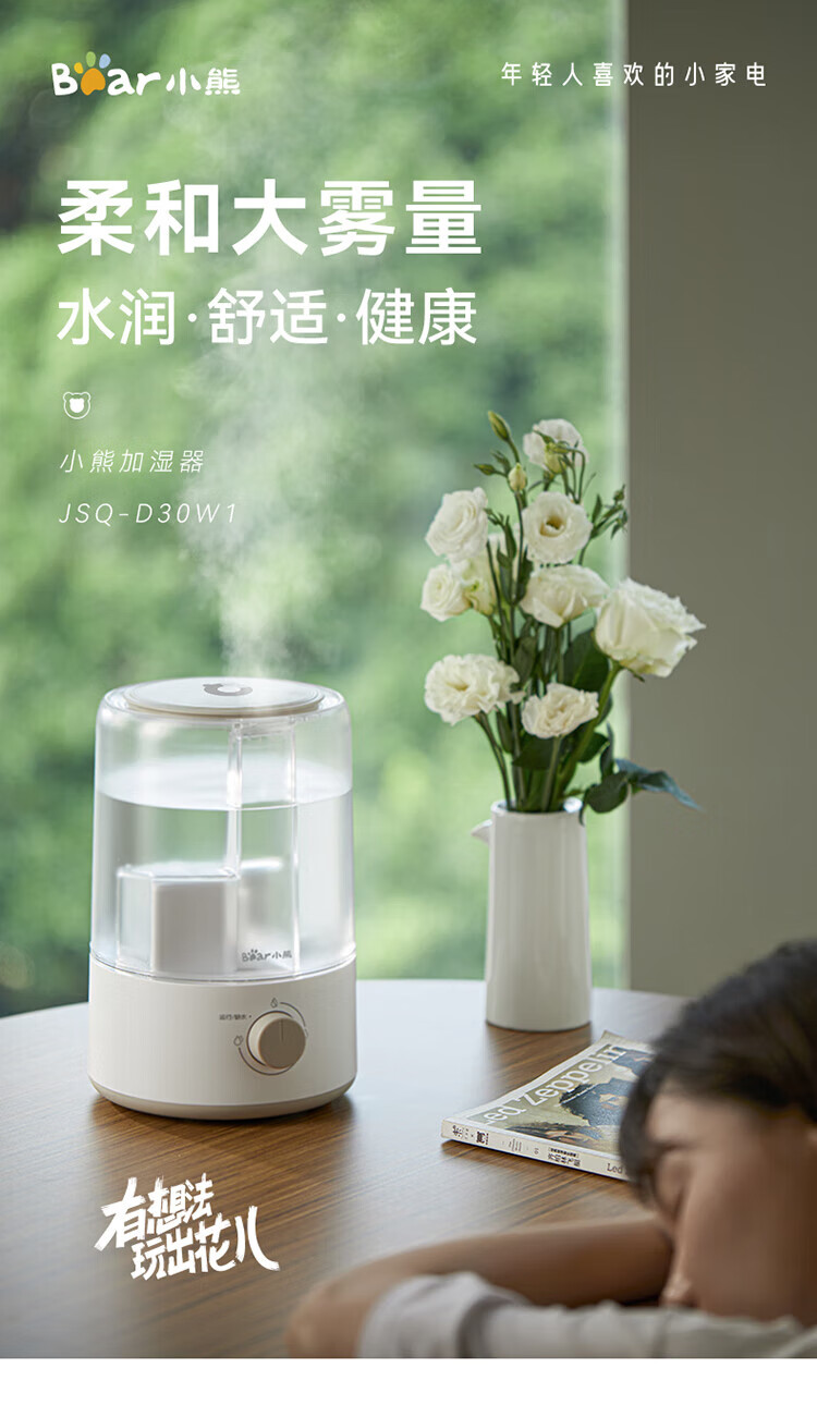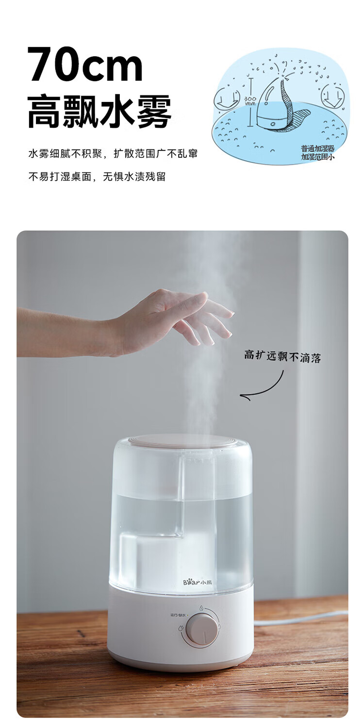 小熊加湿器家用空气加湿机卧室3L迷你增湿机桌面办公低噪大雾量JSQ-D30W1
