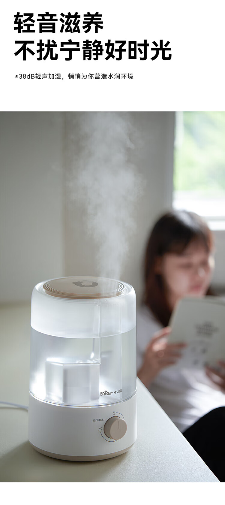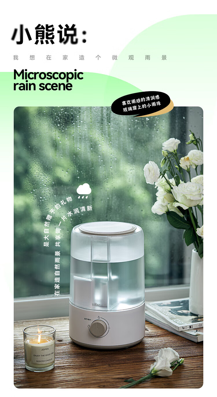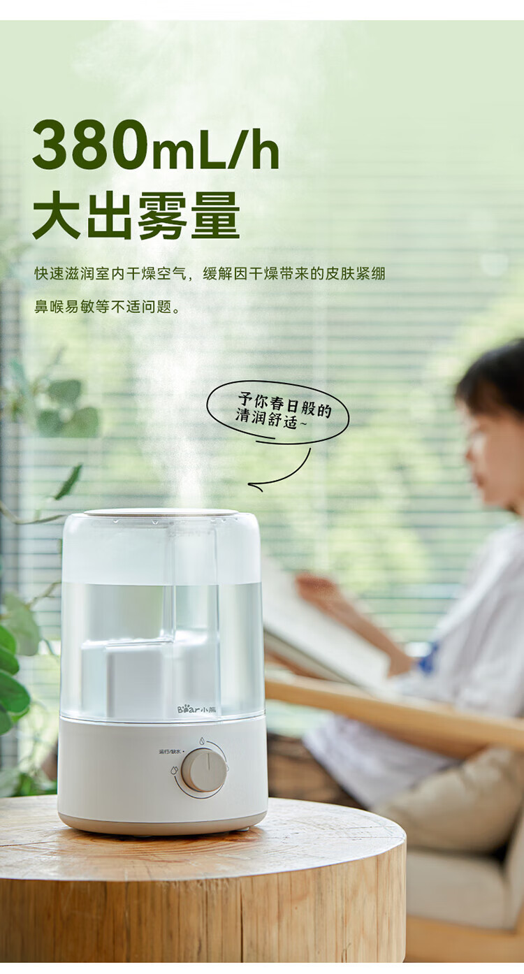小熊加湿器家用空气加湿机卧室3L迷你增湿机桌面办公低噪大雾量JSQ-D30W1