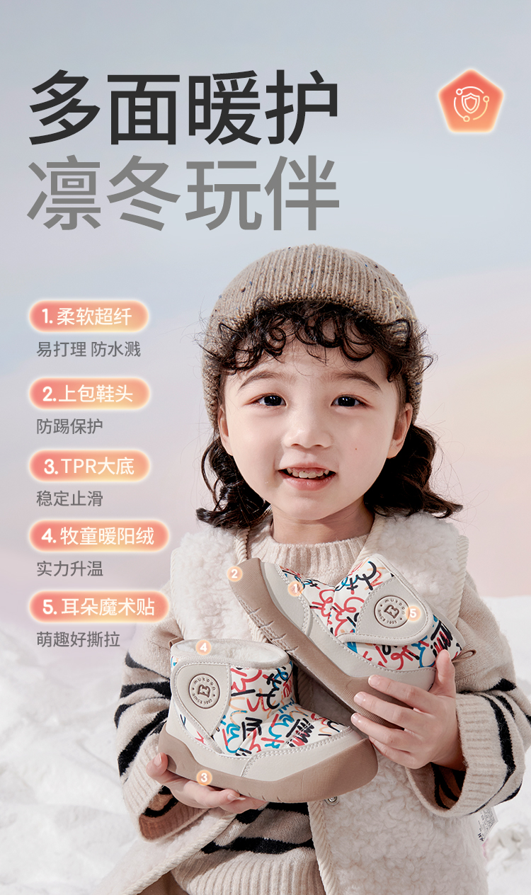 牧童2025冬季新款雪地靴保暖加绒大棉雪地靴室外防滑软底儿童棉鞋