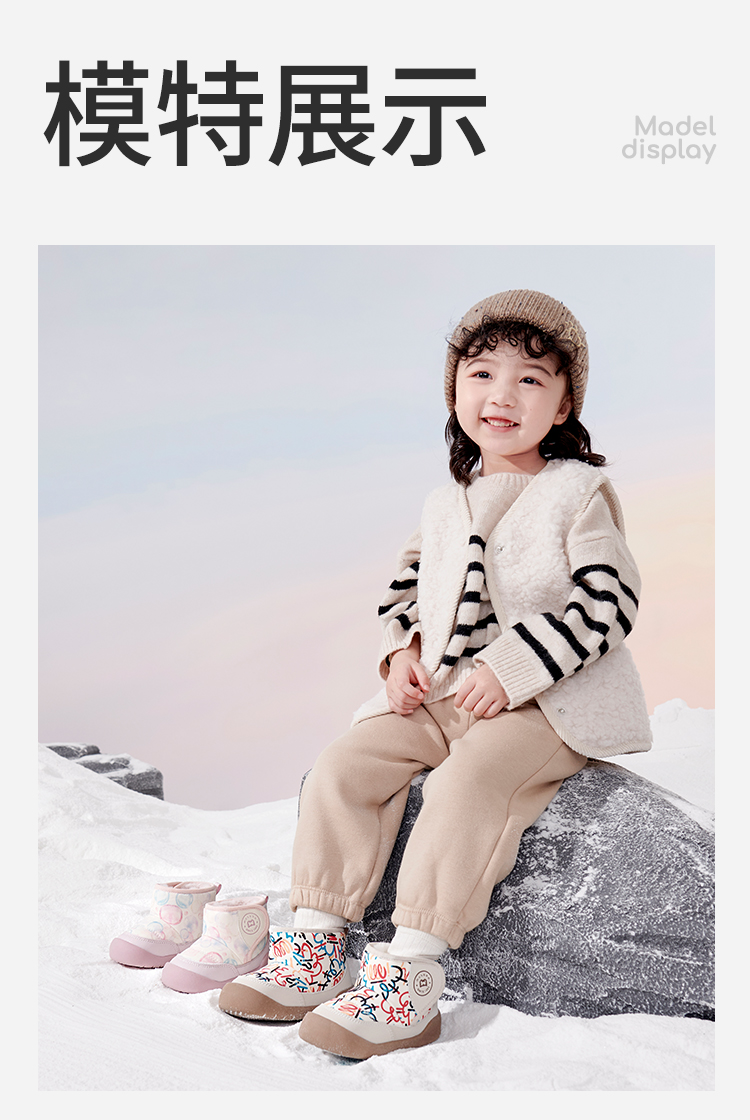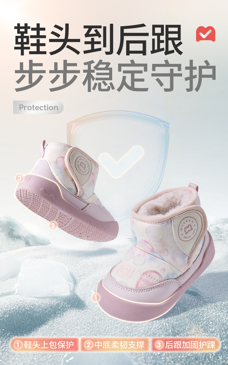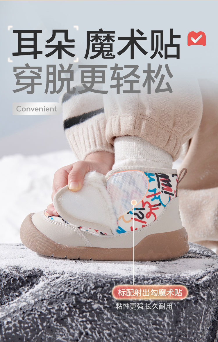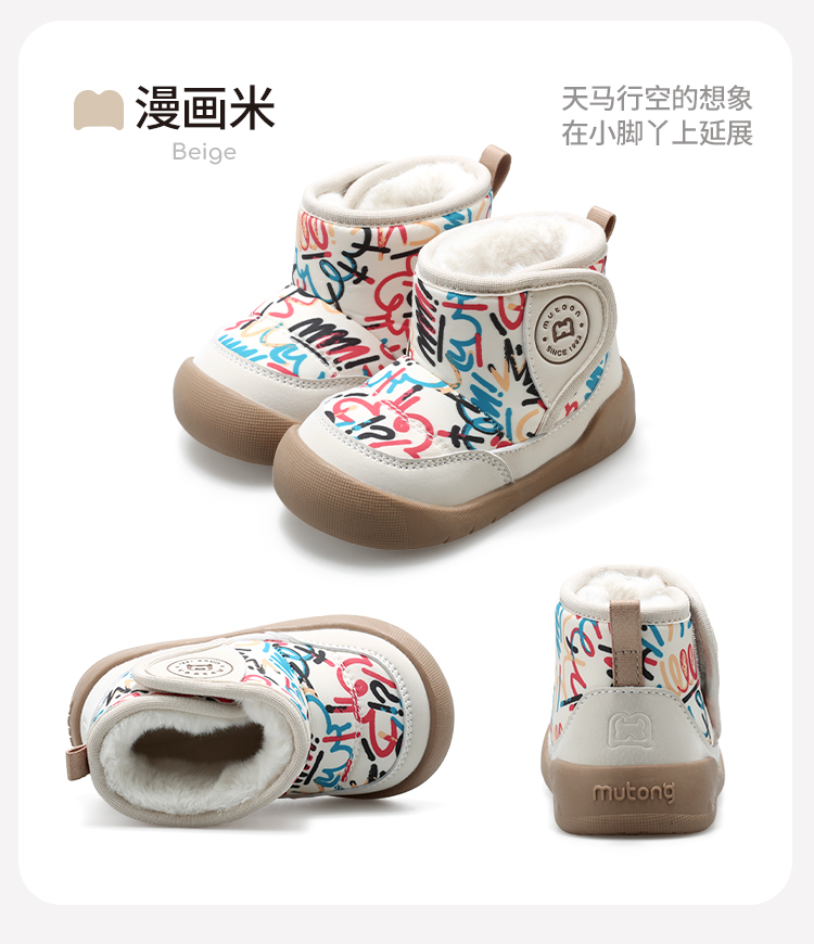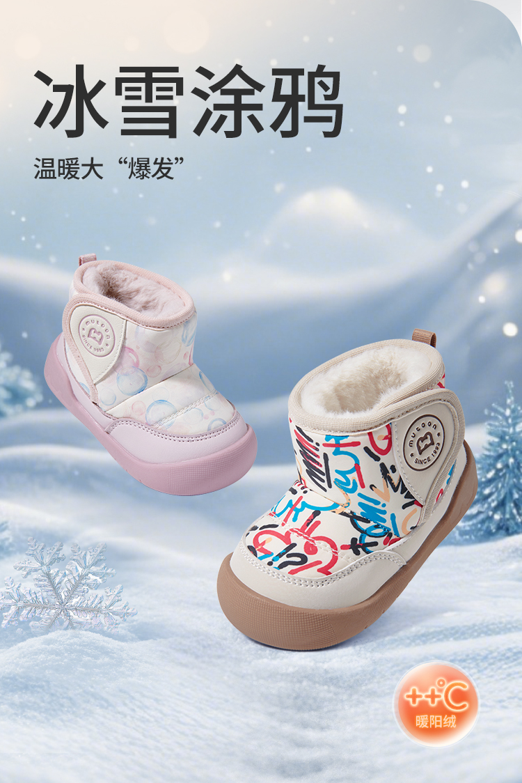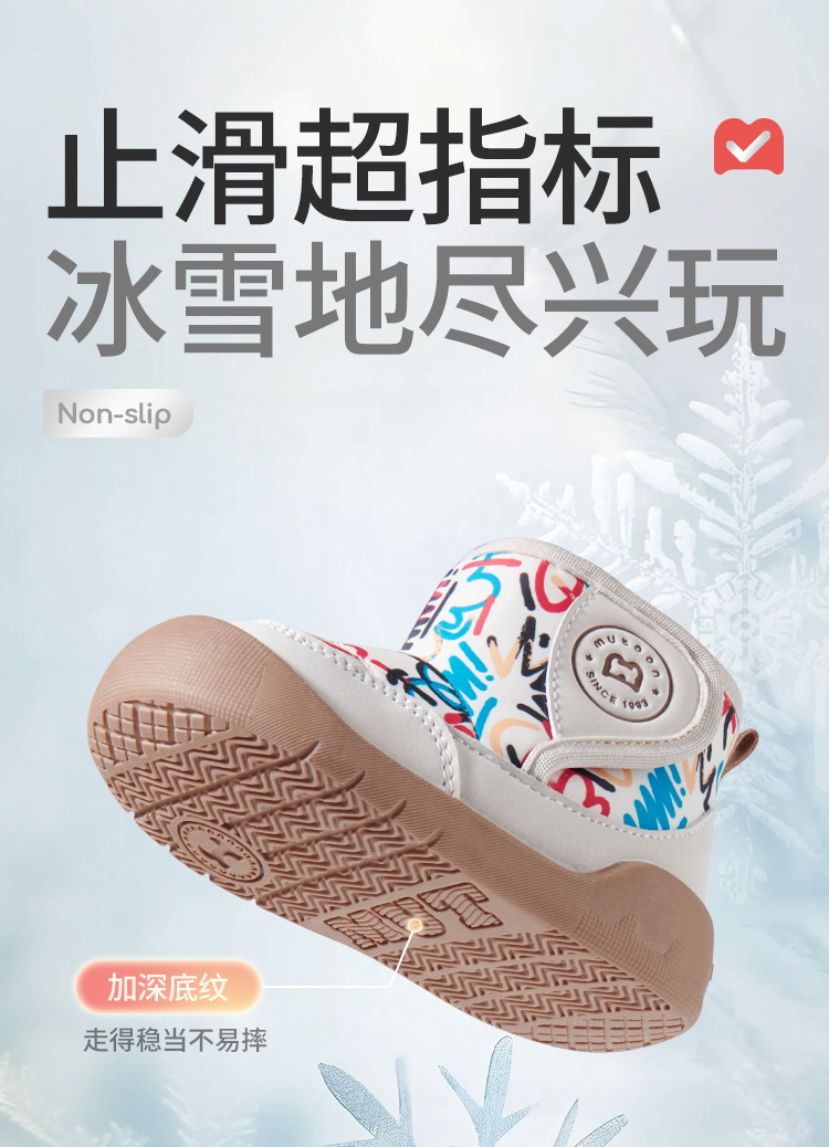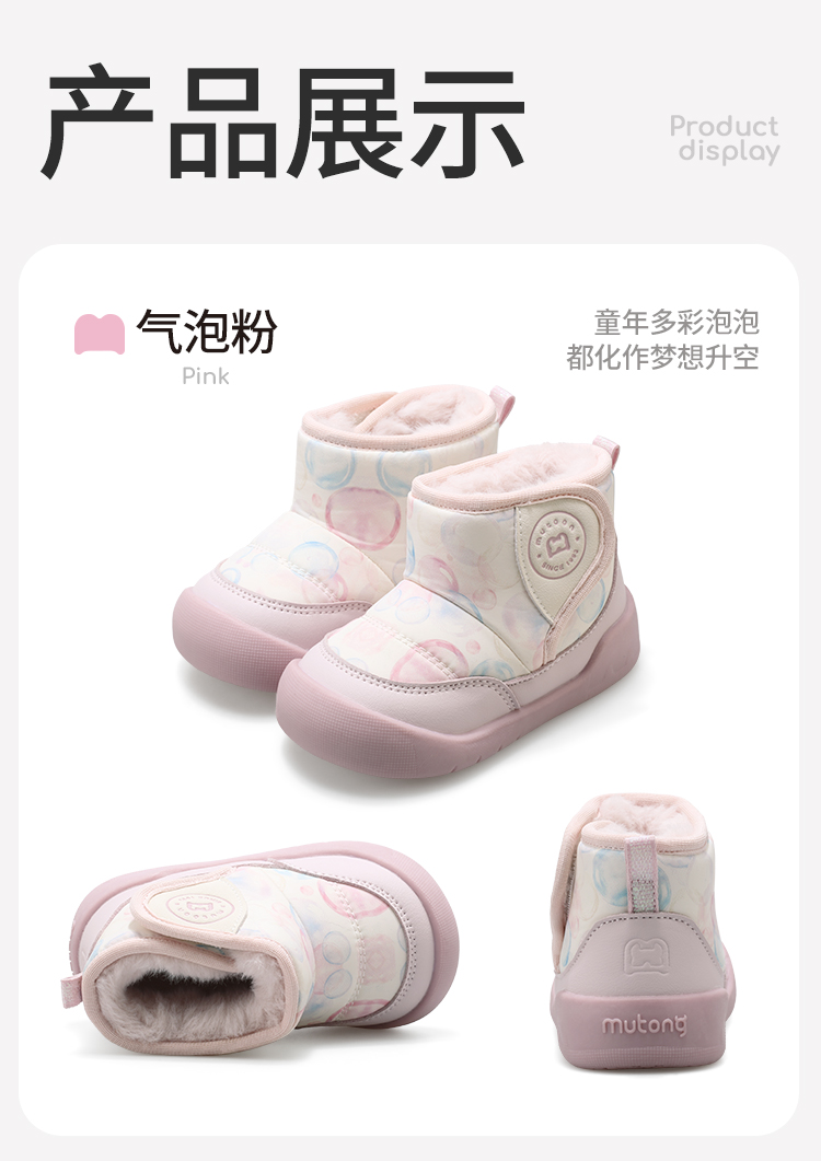 牧童 2025冬季新款加绒卡通学步鞋儿童保暖防滑机能鞋宝宝步前棉高帮鞋