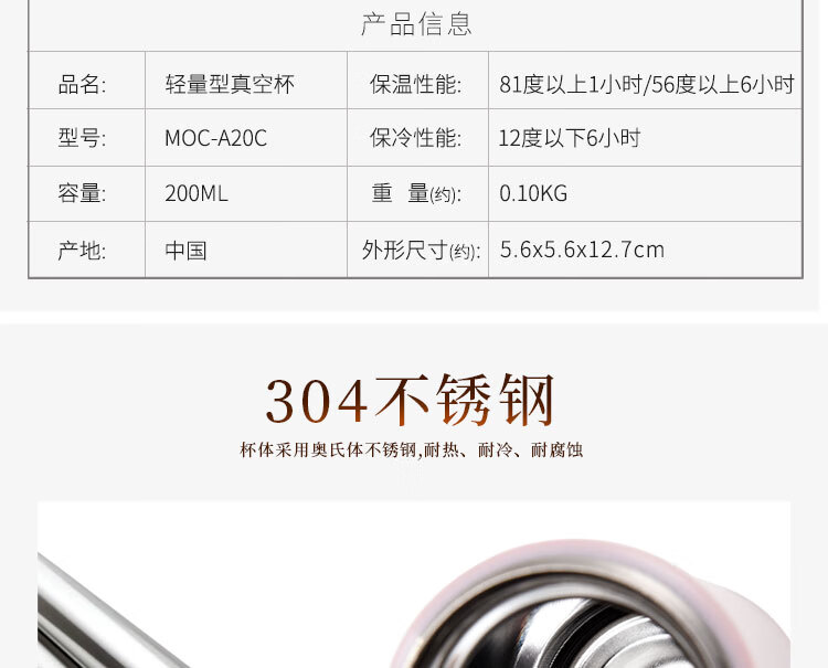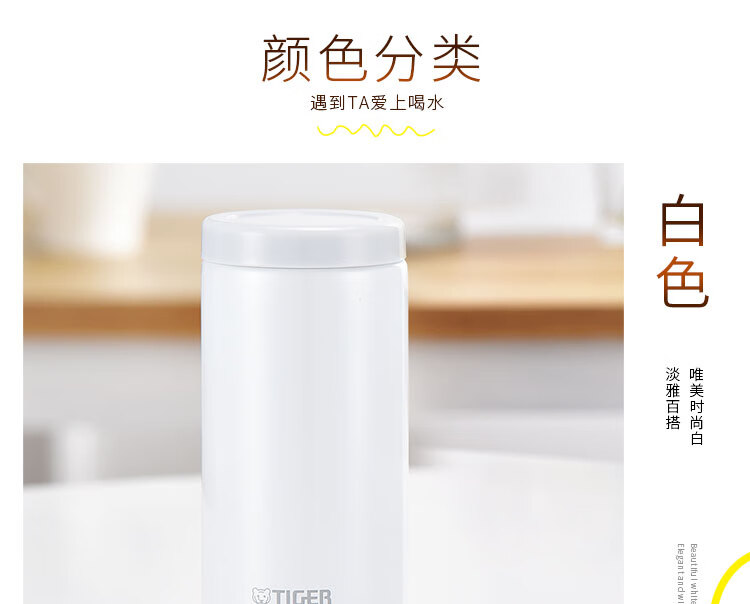 虎牌(Tiger)保温杯轻量型不锈钢时尚水杯MOC-A20C-WW白色200ml