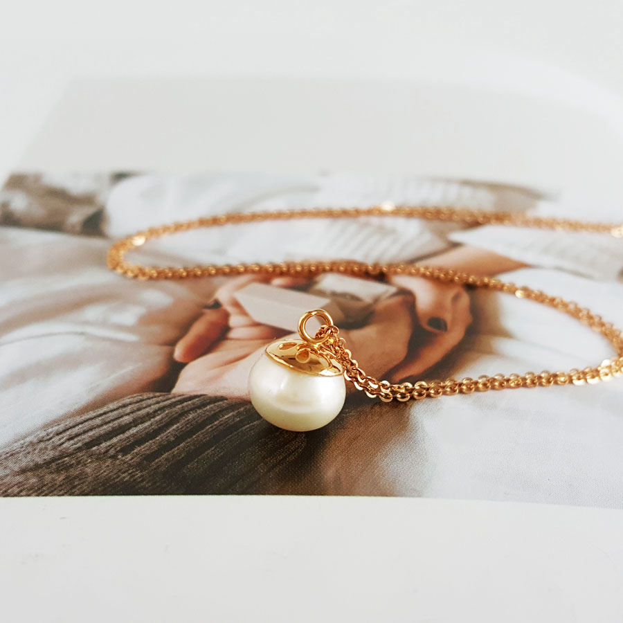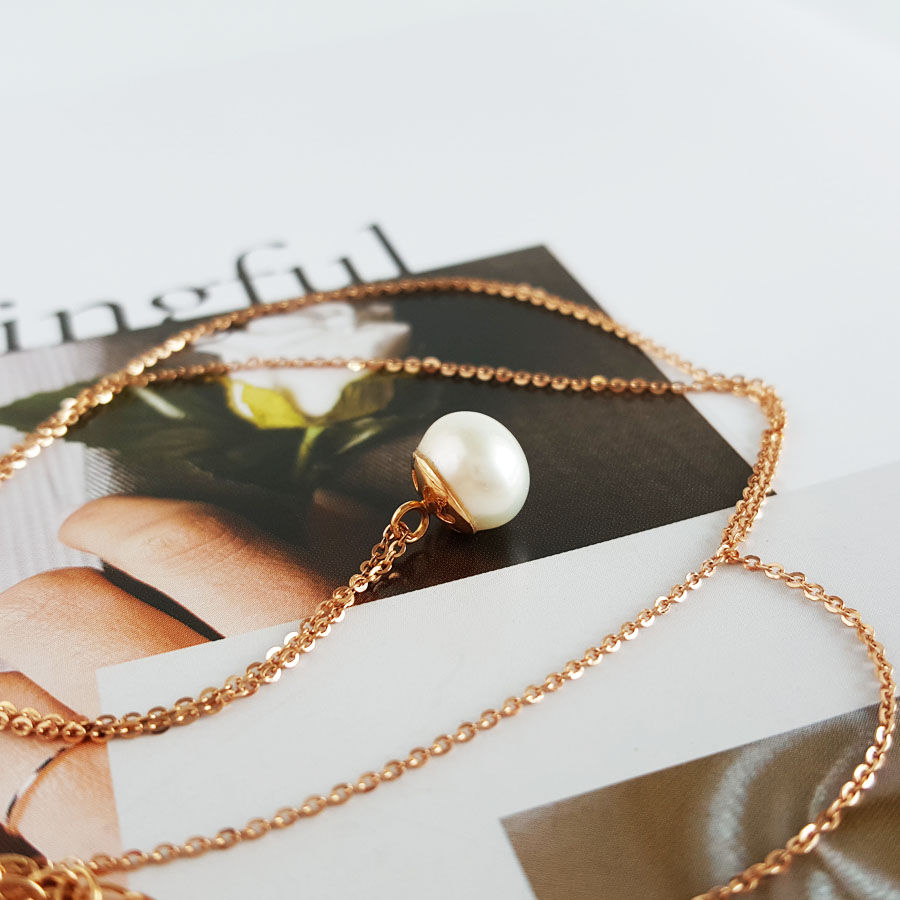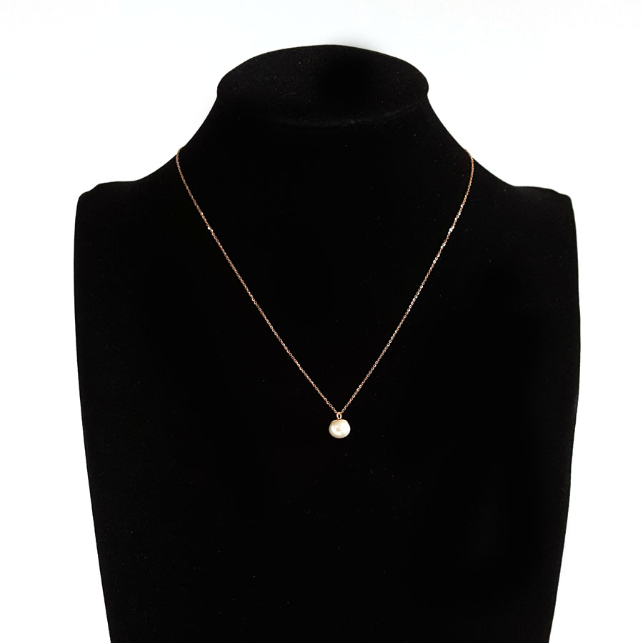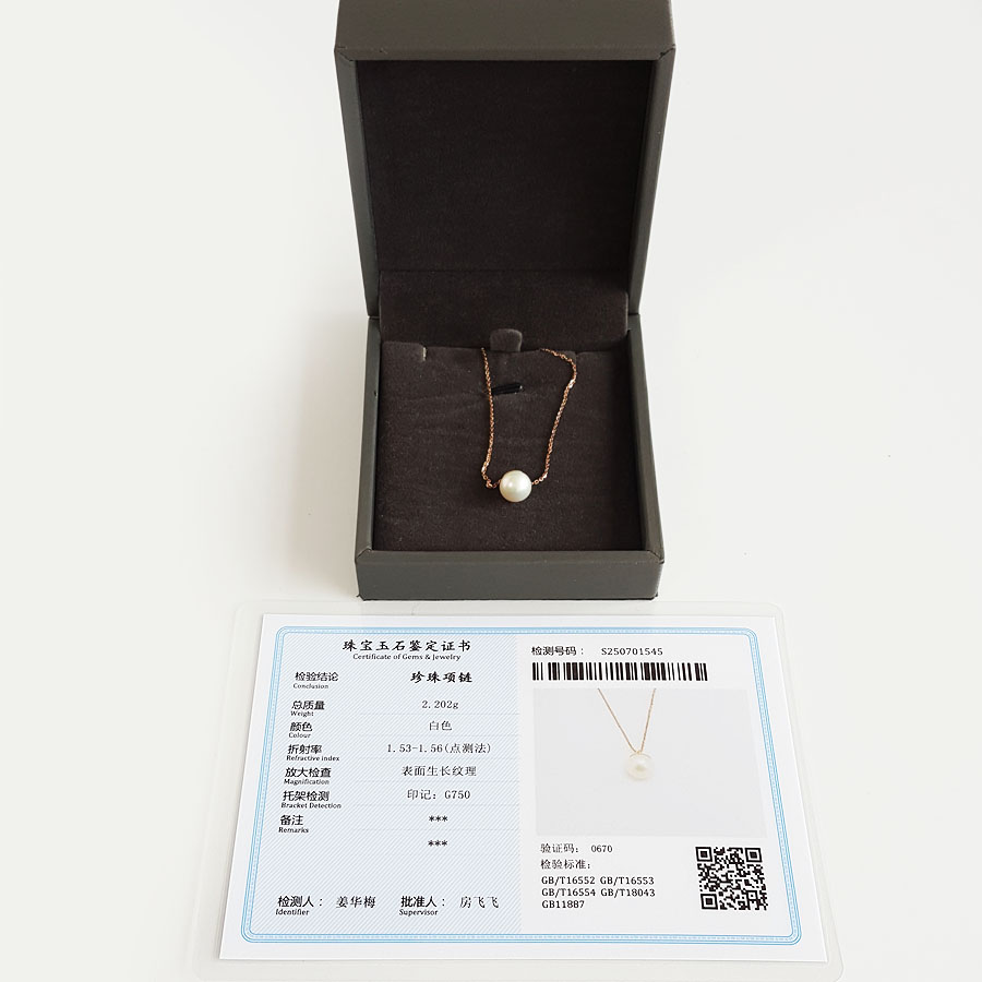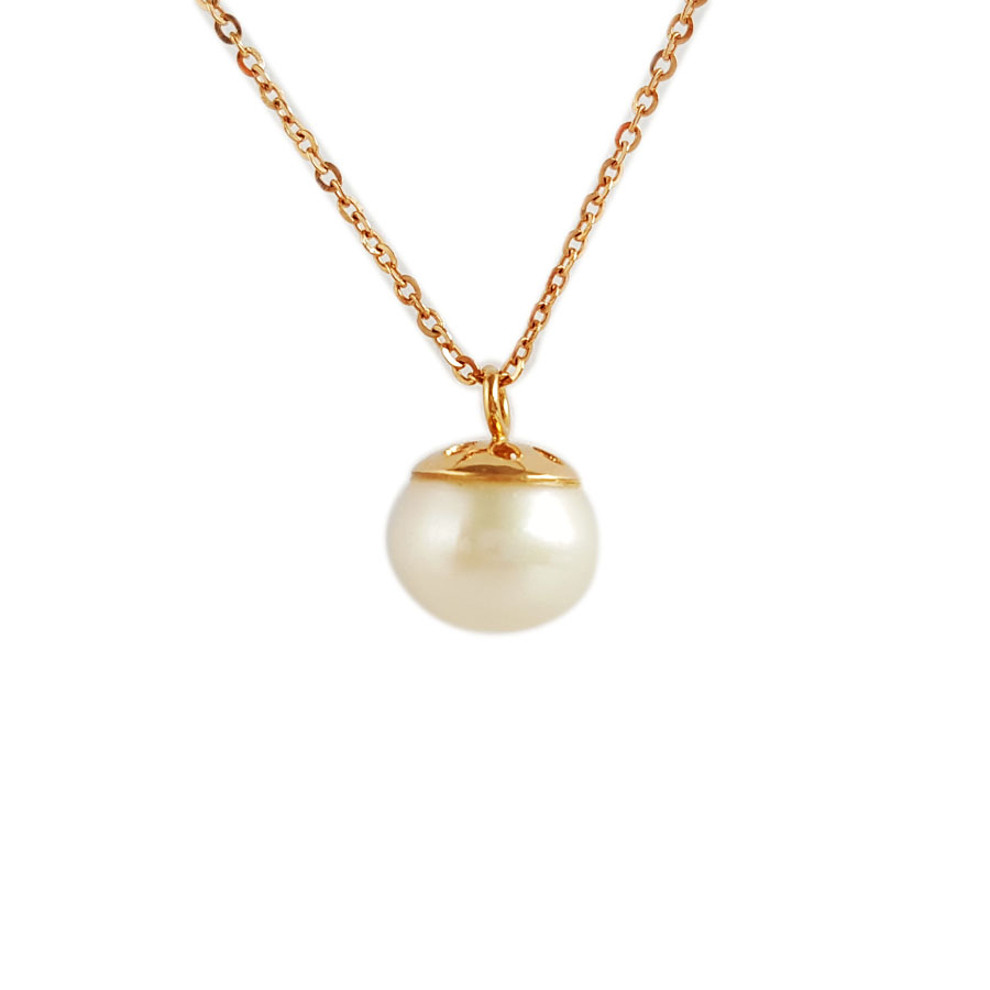款式 | AU750玫瑰金经典简约款约8MM白色珍珠吊坠项链 |