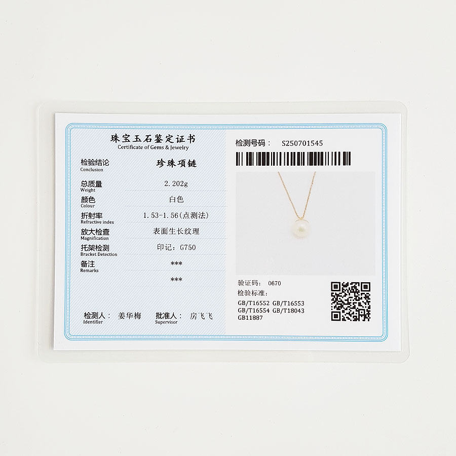 【天然正品】潮宏基AU750玫瑰金经典简约款约8MM白色珍珠吊坠项链10.0*8.0*8.0MM(皆取最大值)链长:45CM(长度可调节)女士现售价:1380特价!240725NJM10