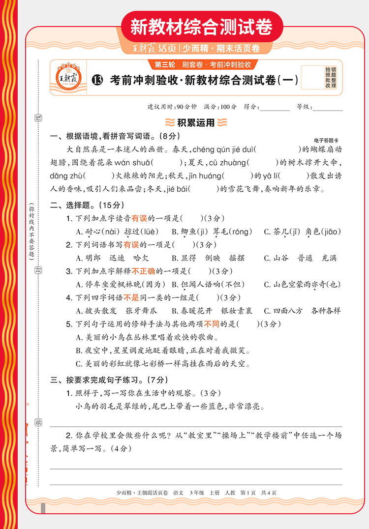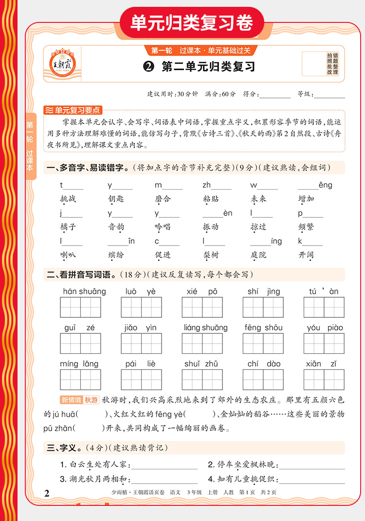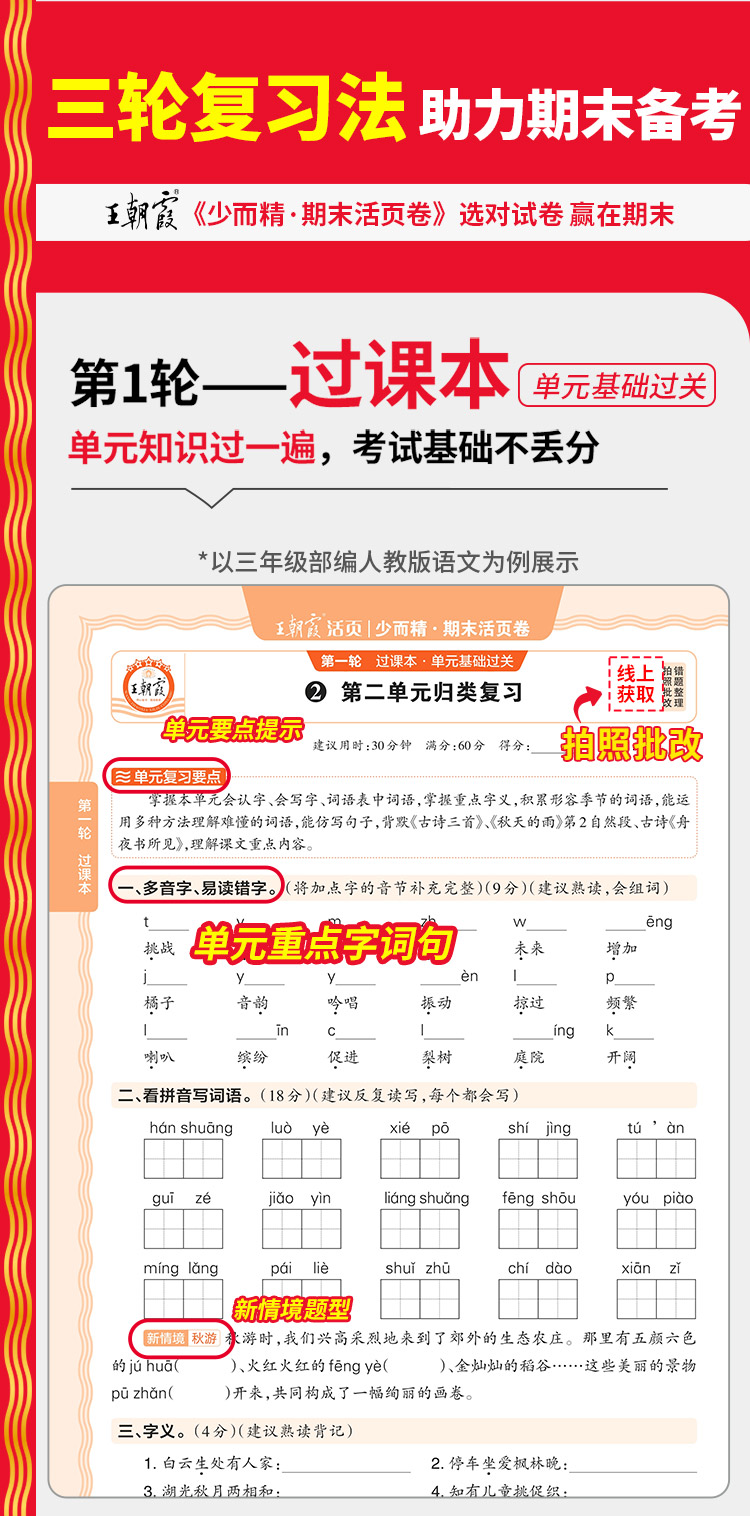 2025秋上册王朝霞过课本期末复习导航期末考前复习备考AI老师辅导伴学期末冲刺卷