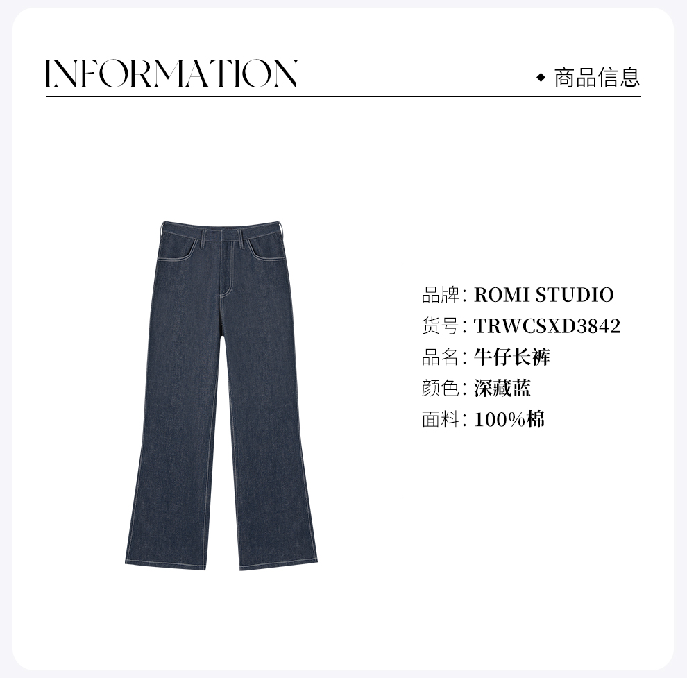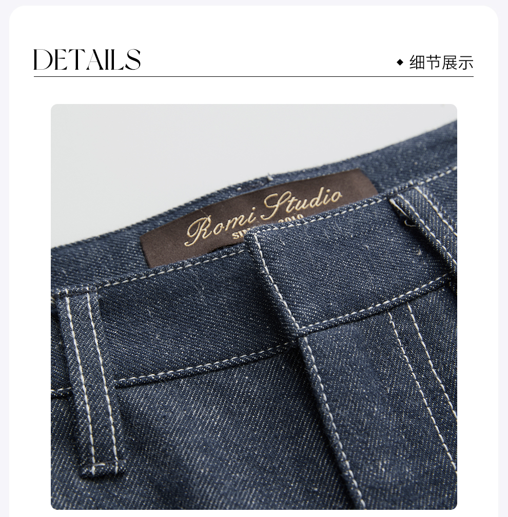 ROMI STUDIO“老钱静奢”独特平纹高腰微喇直筒牛仔裤RWCSXD3842