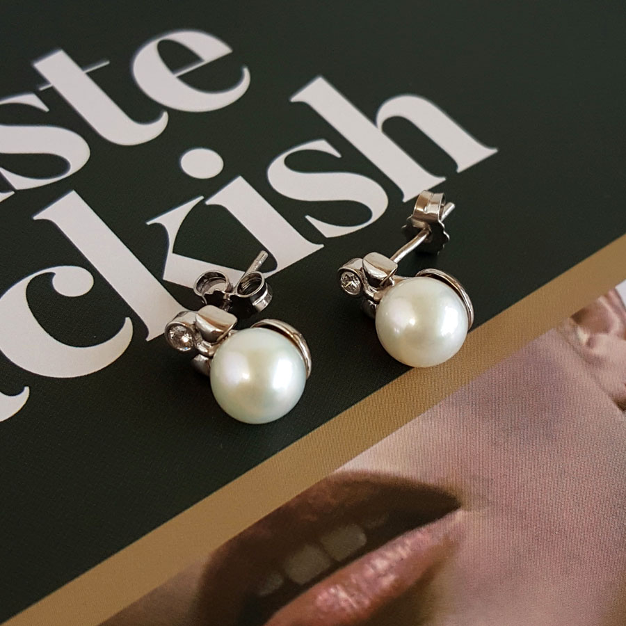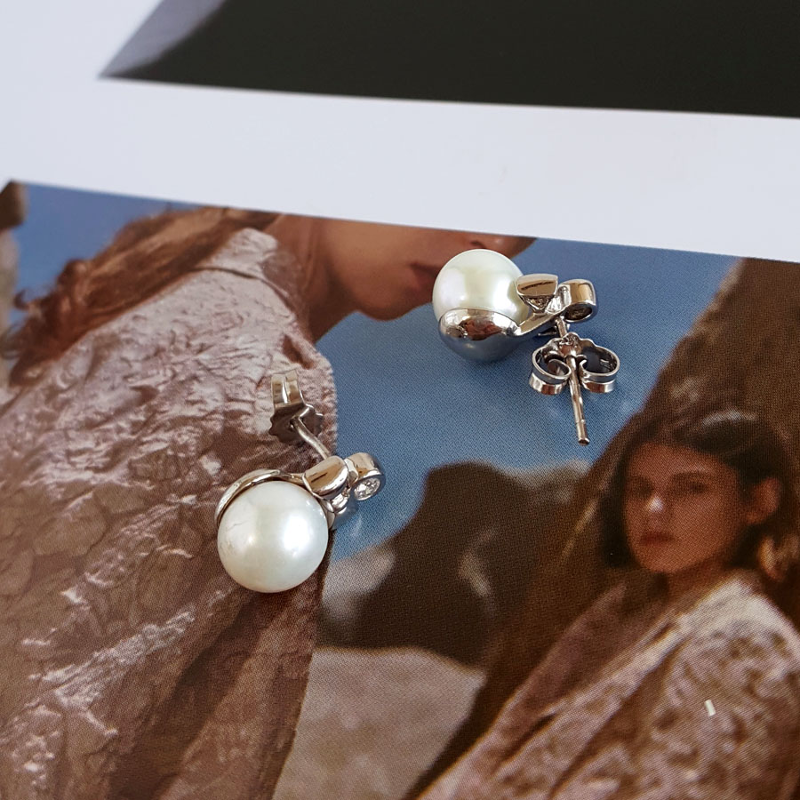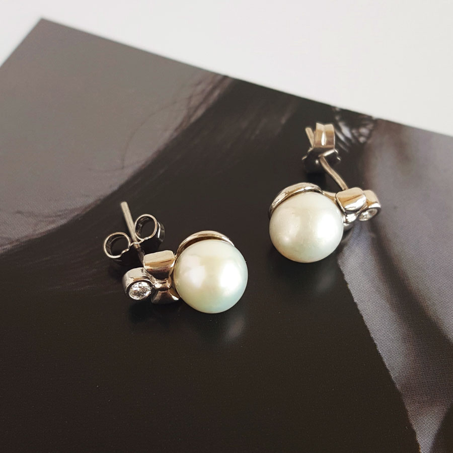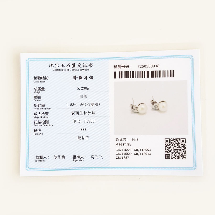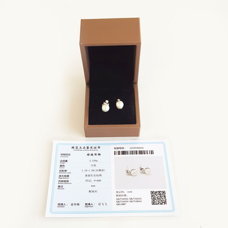 名称 | PT900铂金镶钻镶天然约7.9MM白色珍珠耳环 |