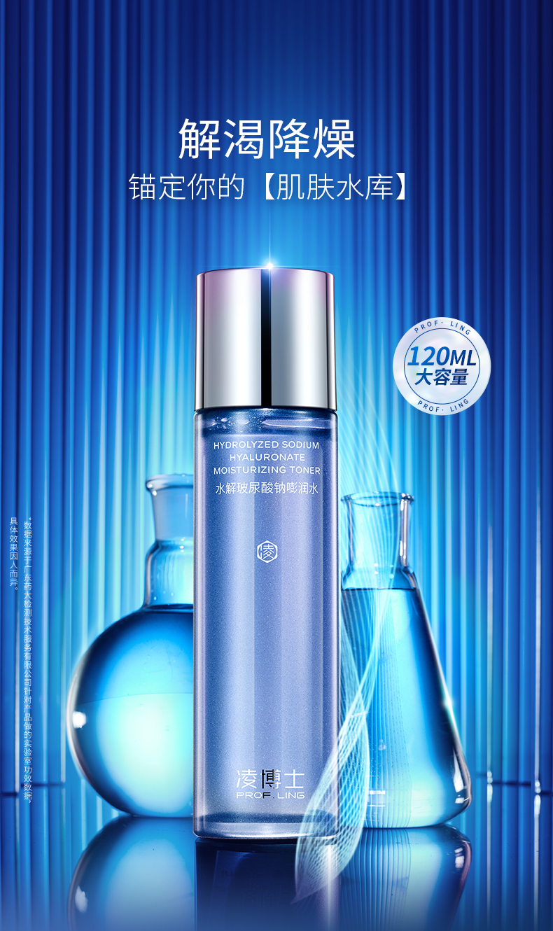 【内购专属】凌博士水解玻尿酸钠嘭润水120ml面部保湿补水舒缓精华水官方店