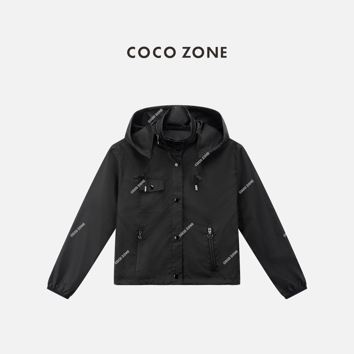 COCO ZONE 时尚立领连帽显瘦外套设计感口袋上衣CC1B1415