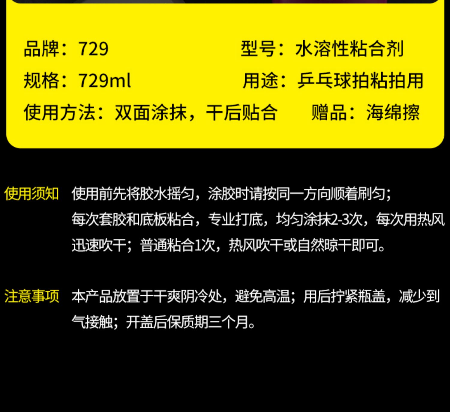 友谊729乒乓球无机胶水 水溶性乒乓球胶皮专业粘合剂