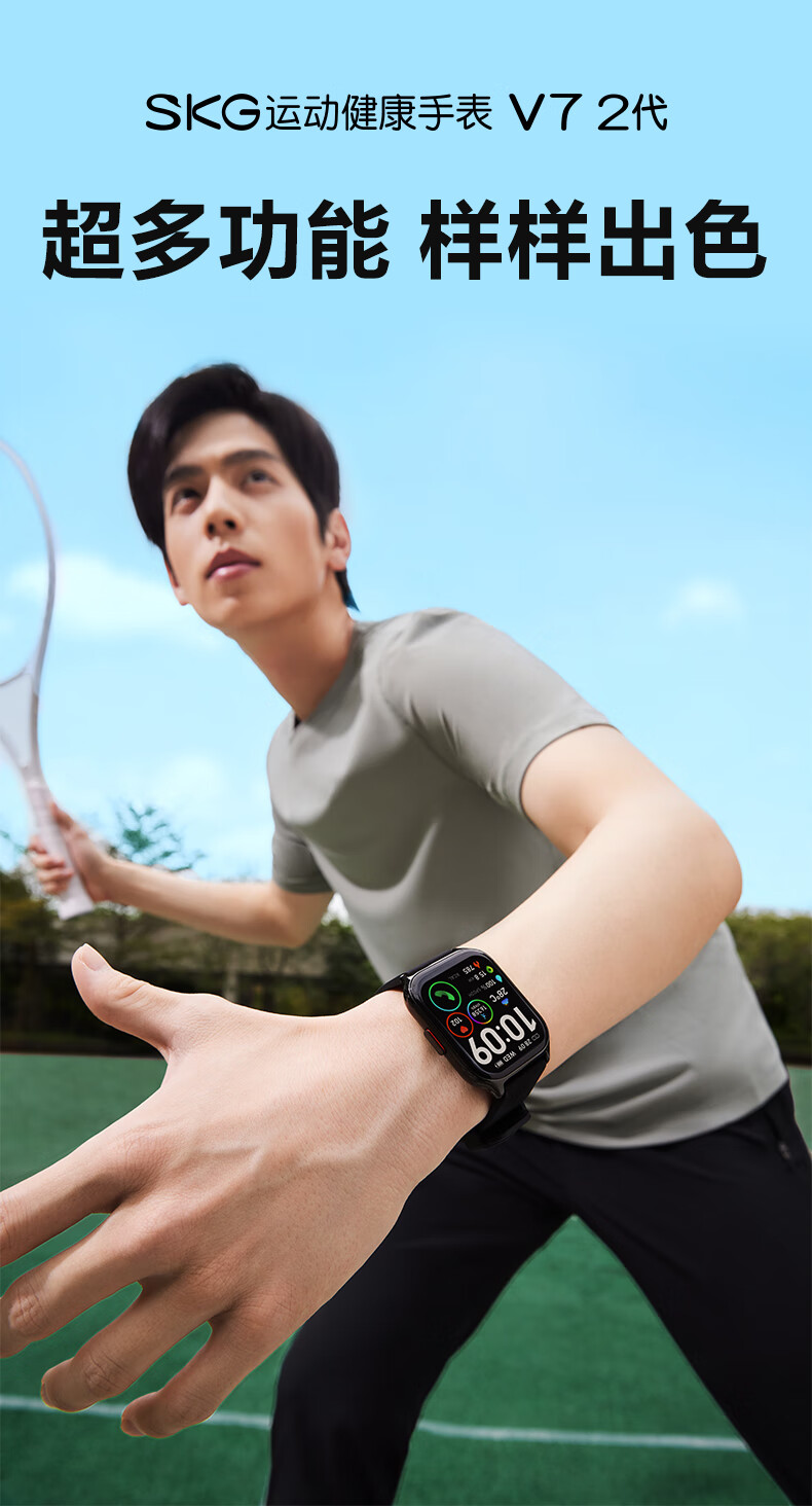 skg智能运动手表 心电记录仪血氧检测长续航防尘水健康监测 圣诞礼物送父母长辈老婆 健康手表V7 2代