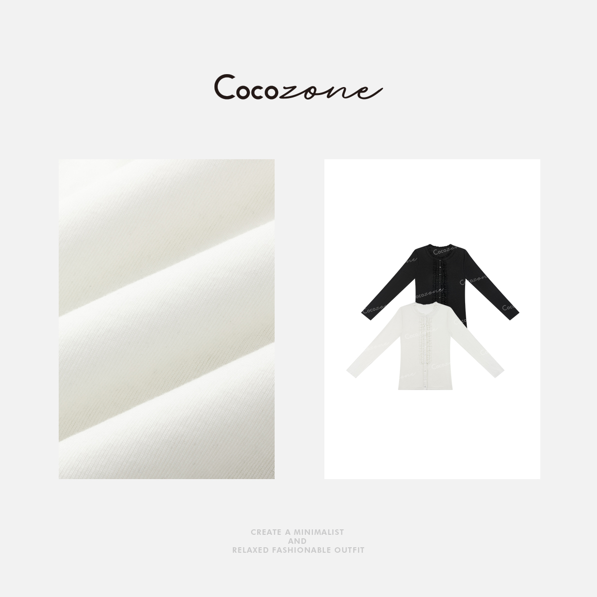 COCO ZONE 2025新款拼接木耳边边单排扣针织衫CD2A0290