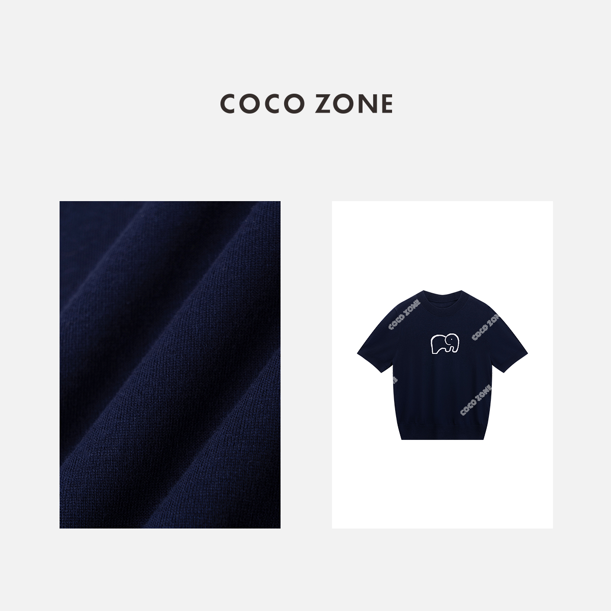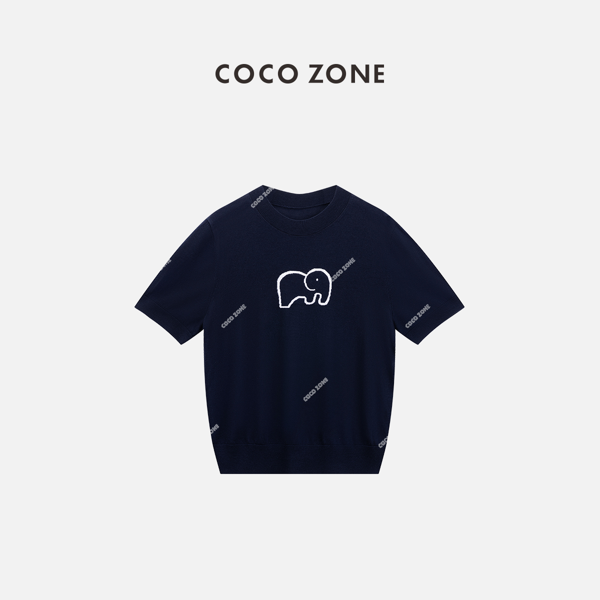 COCO ZONE "小象复古“100绵羊毛圆领针织衫显瘦短袖上衣CC2B0873