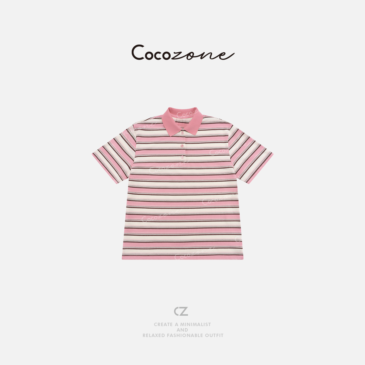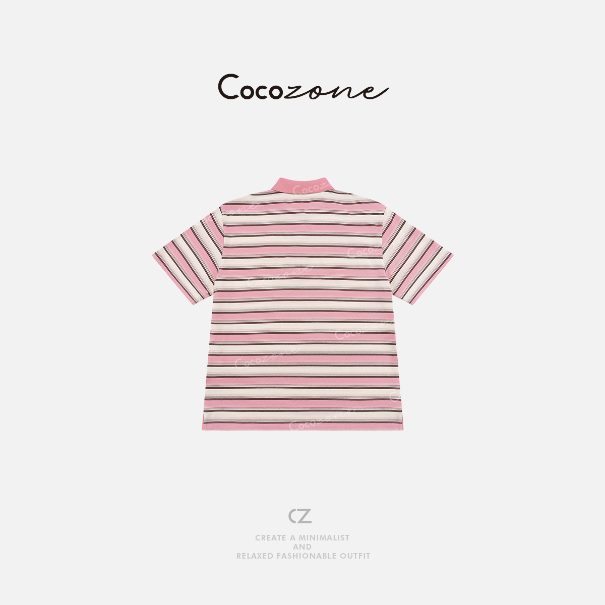 COCO ZONE刘一一 【棉】通勤翻领条纹撞色休闲短袖T恤CD1A0669
