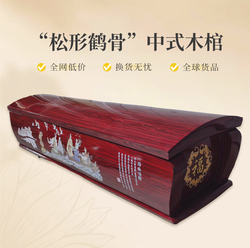火化棺中式木棺“松形鹤骨”夹板火化棺