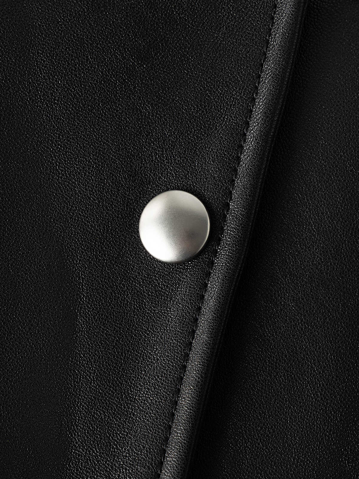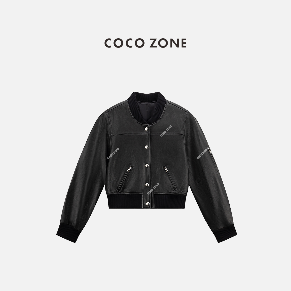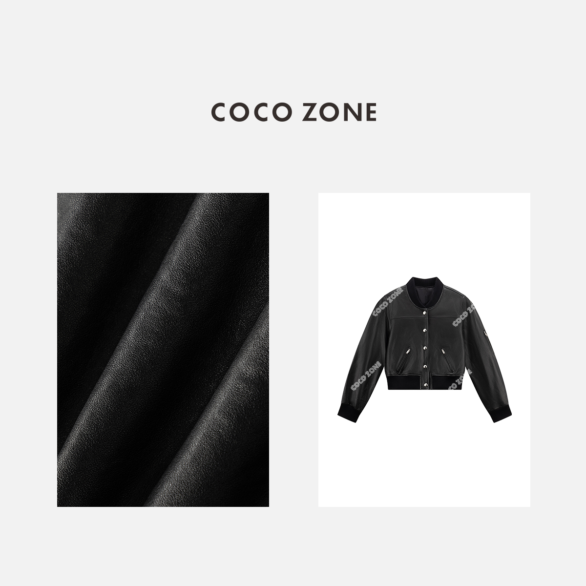 COCO ZONE 复古撞色立领皮衣外套气质单排扣上衣CC2C1288