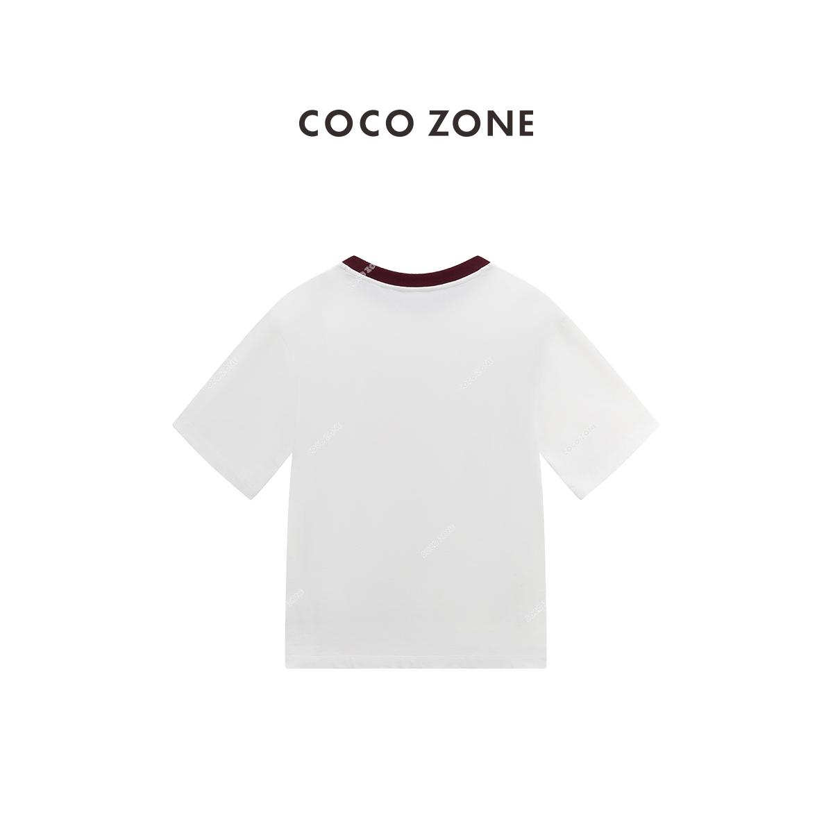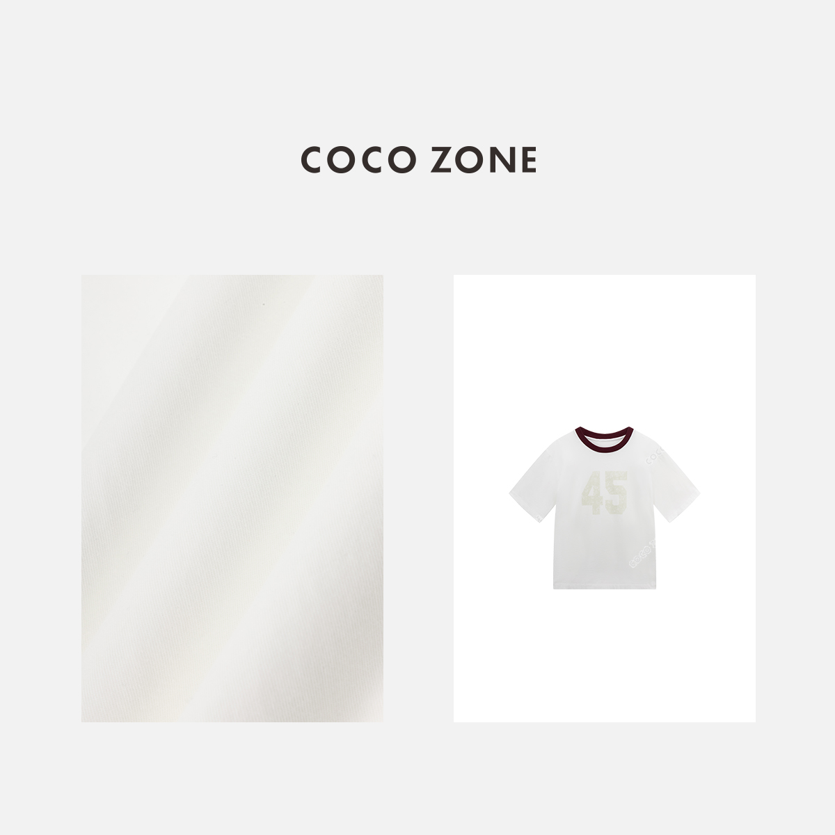 COCO ZONE 时尚撞色圆领短袖T恤设计感数字上衣CC1B1334