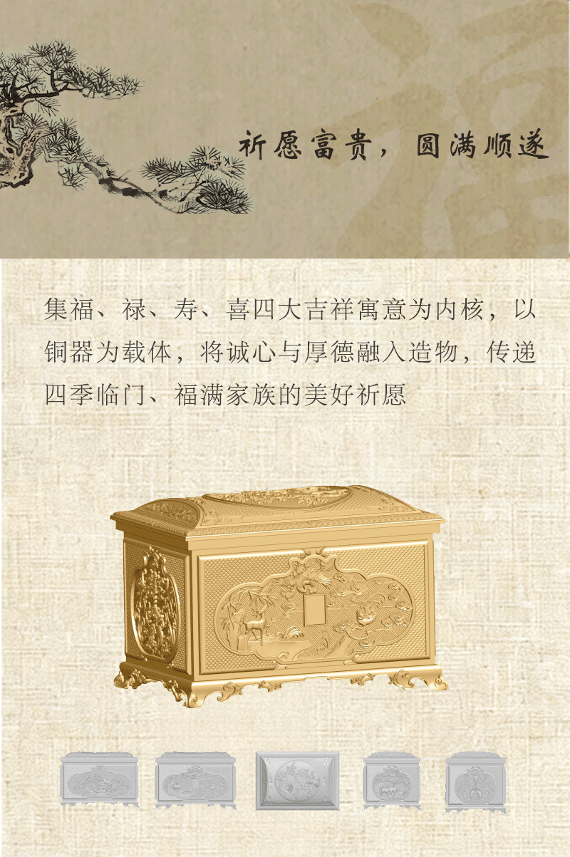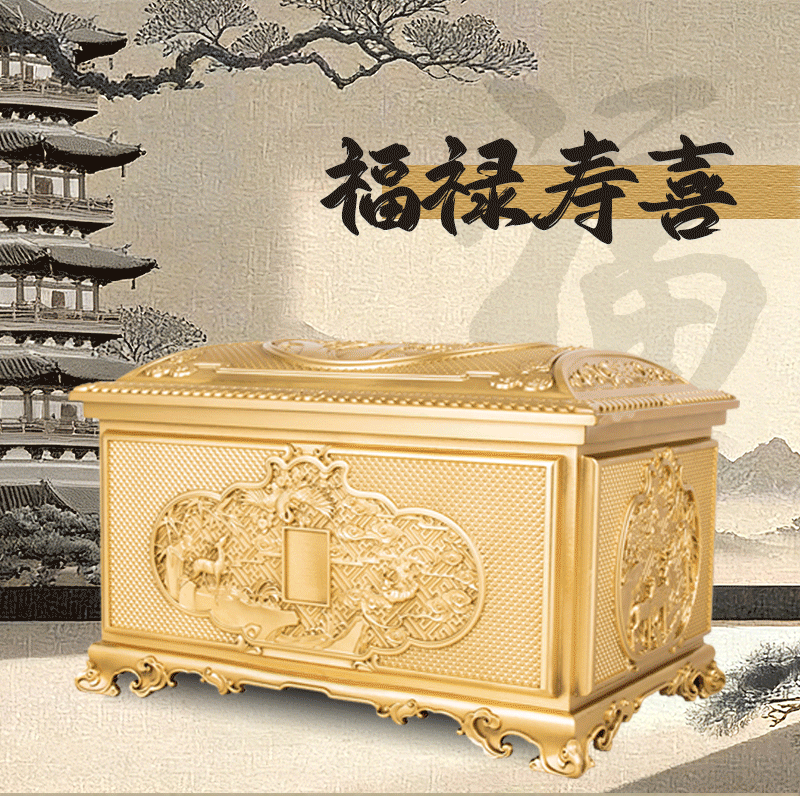 铜制骨灰盒福款·福禄寿喜款红花梨木铜本色男女寿盒