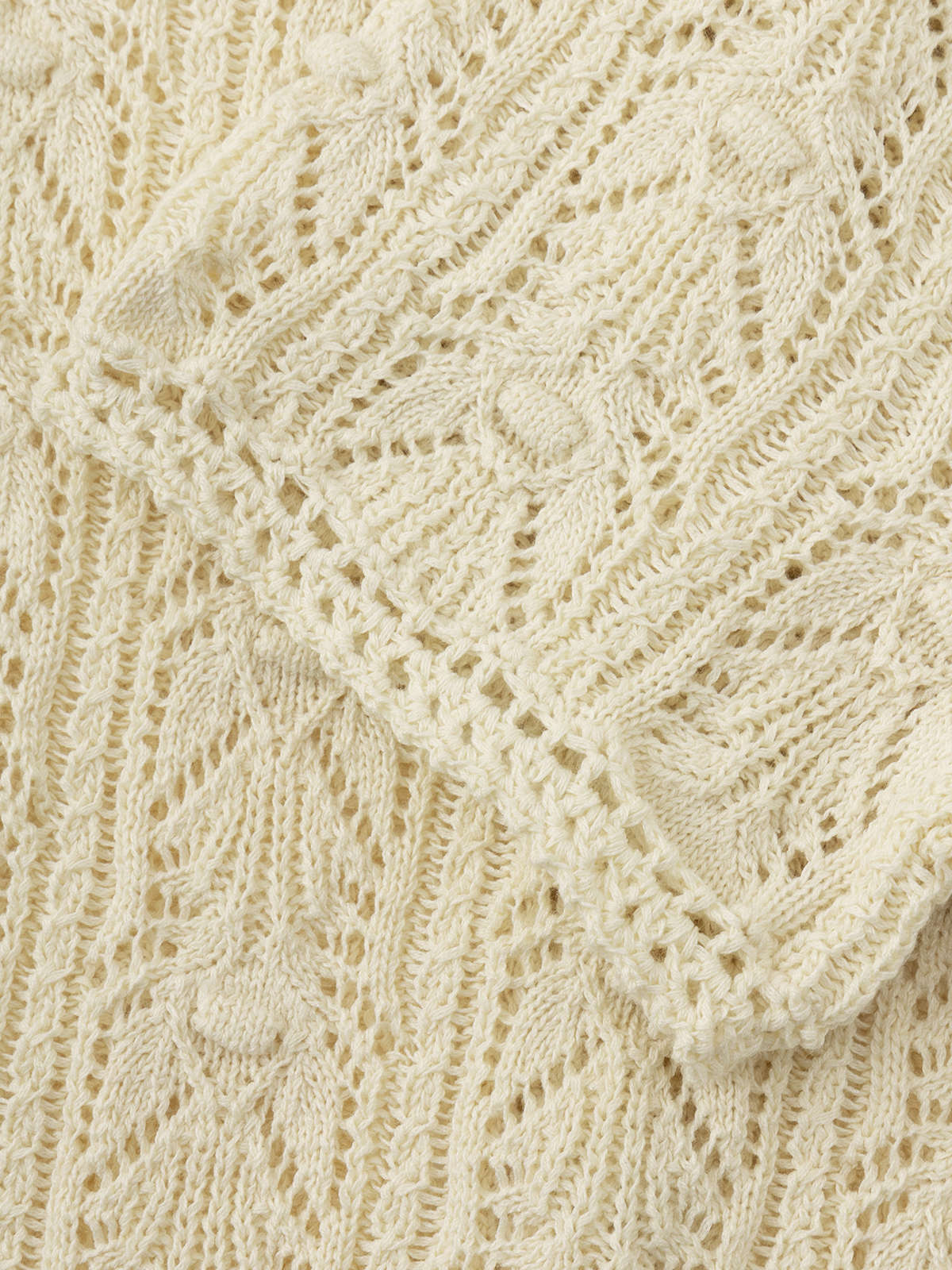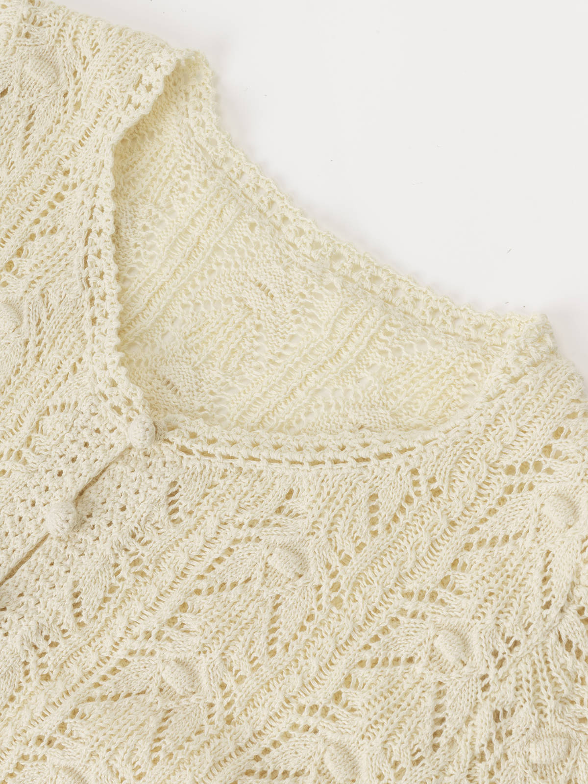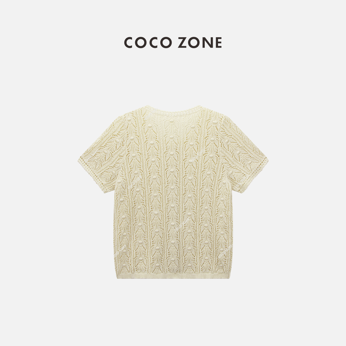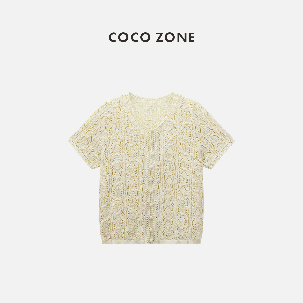 COCO ZONE "钩花美学” 时尚设计感镂空V领单排扣短袖针织衫CC1B1243