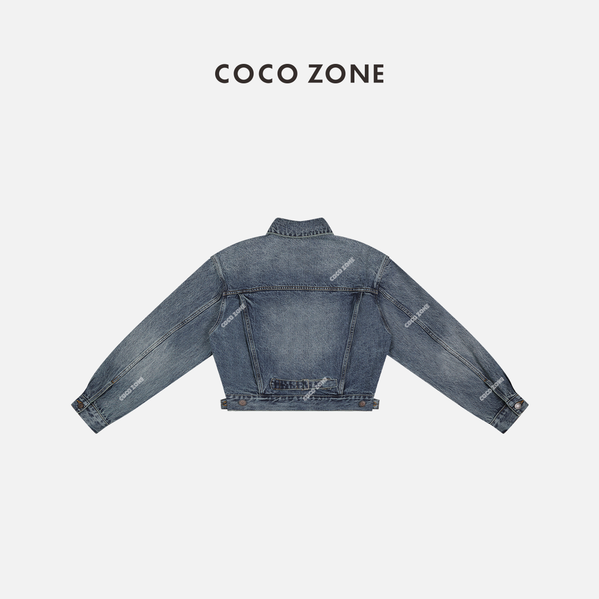 COCO ZONE100棉短款前口袋牛仔外套高级感复古上衣24C10281