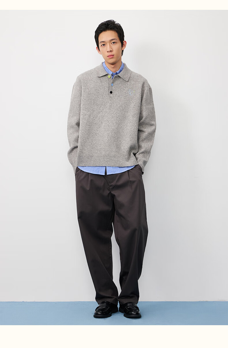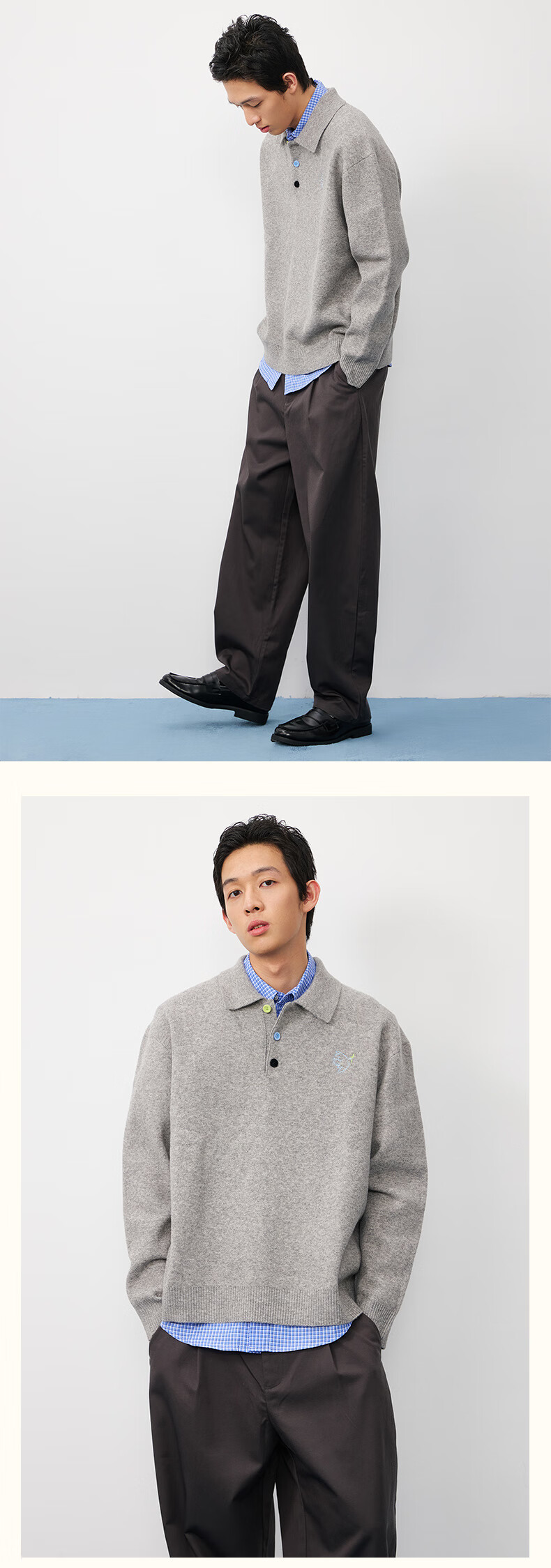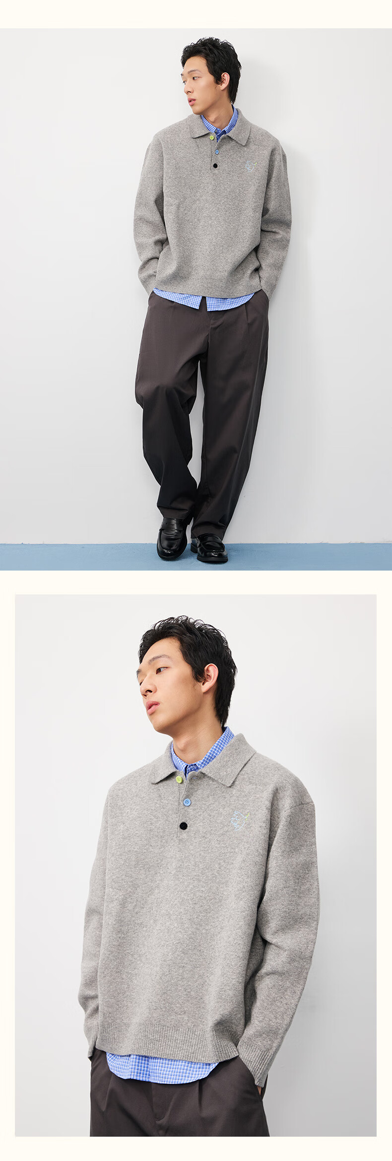NPC潮牌【至臻羊毛胶囊】丝光澳毛绒嵌花圆领套头毛衣男NP5ASW04