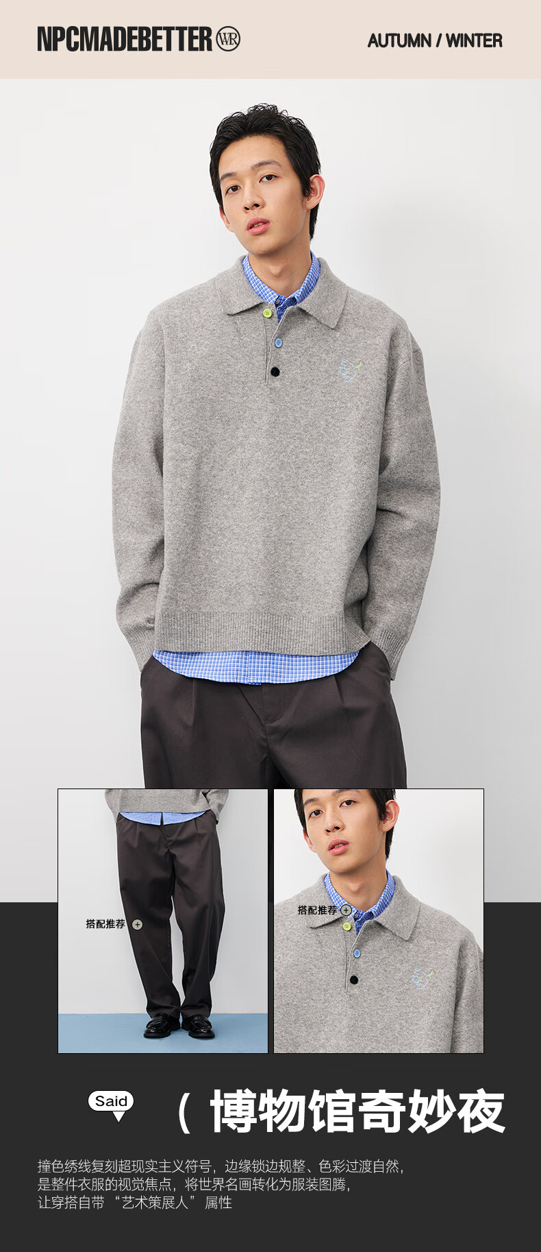 NPC潮牌博物馆奇妙夜系列毛衣男女情侣秋冬宽松休闲保暖NP57SW55
