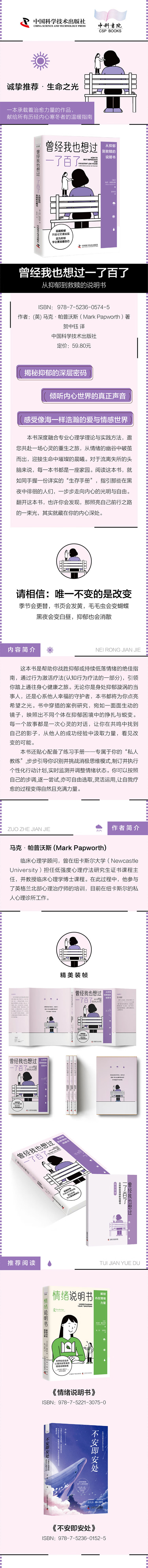 1.【诚挚推荐·生命之光】《曾经我也想过一了百了:从抑郁到救赎的说明书》——以极其真实的笔触深度剖析了抑郁困扰众人的本质,详实书写心理疗法指南,带领读者穿越情绪的低谷,寻觅到生活的曙光。