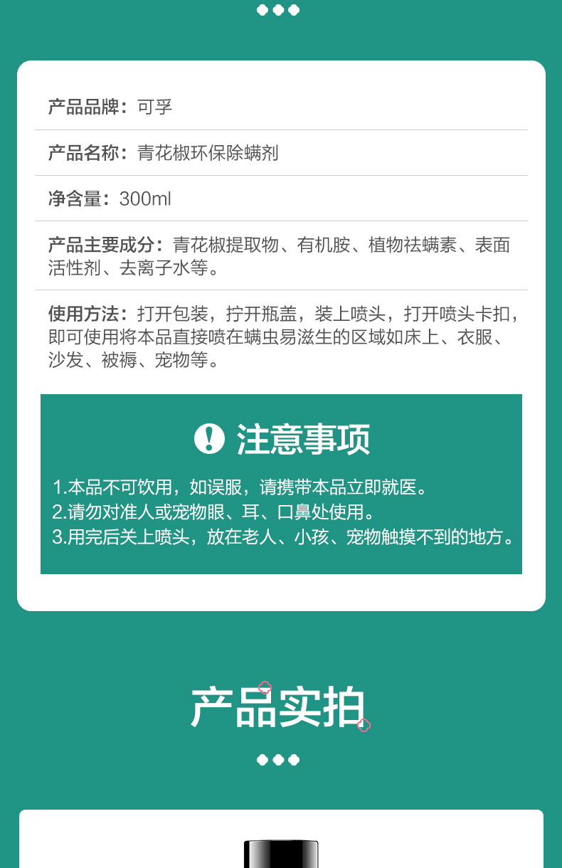 可孚青花椒除螨喷雾 免洗免晒 母婴可用