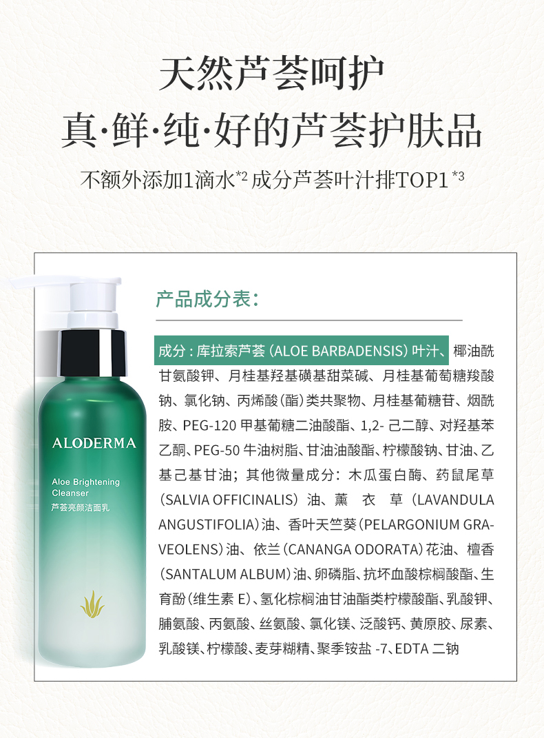 【品牌月专享】瑷露德玛芦荟亮颜洁面乳 120g 清:清肤净颜,水嫩柔嫩
